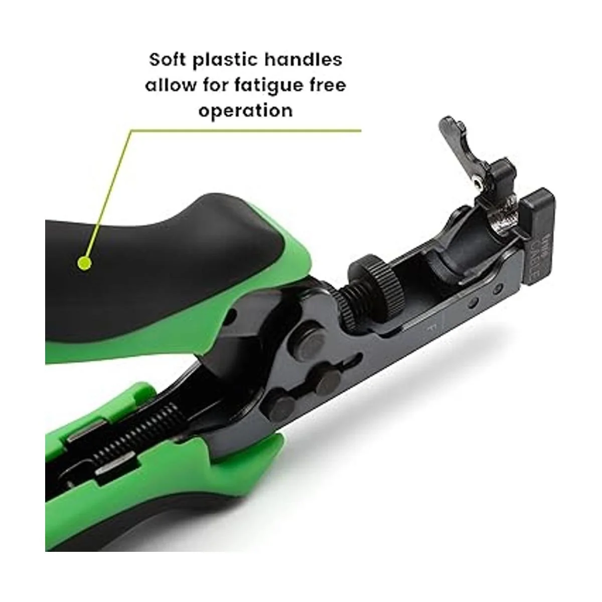 Cómodo. Ajuste con agarres de goma TPE para comodidad durante todo el día. El bloqueo de mango integrado mantiene tu crimpadora cerrada mientras estás en movimiento.