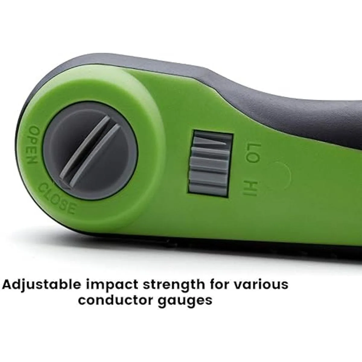 Versátil. Esta práctica herramienta de perforación de impacto de energía cinética viene con una hoja de terminación 110 con extremos reversibles de corte de terminación y terminación. Ajustes de alto y bajo impacto para permitir diferentes tamaños de conductor. Ideal para terminar conectores Keystone y paneles de parche.