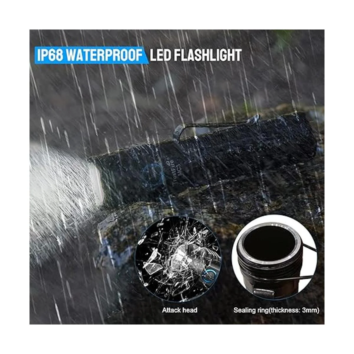 Tapa magnética y resistente al agua: la tapa magnética plana de la linterna MC3 permite que se fije a superficies de metal ferroso para mantener las manos libres. La linterna MC3, que tiene una clasificación IP6 a prueba de polvo y IP8 impermeable 6.6 ft, se puede utilizar en entornos exteriores complejos y cambiables.
