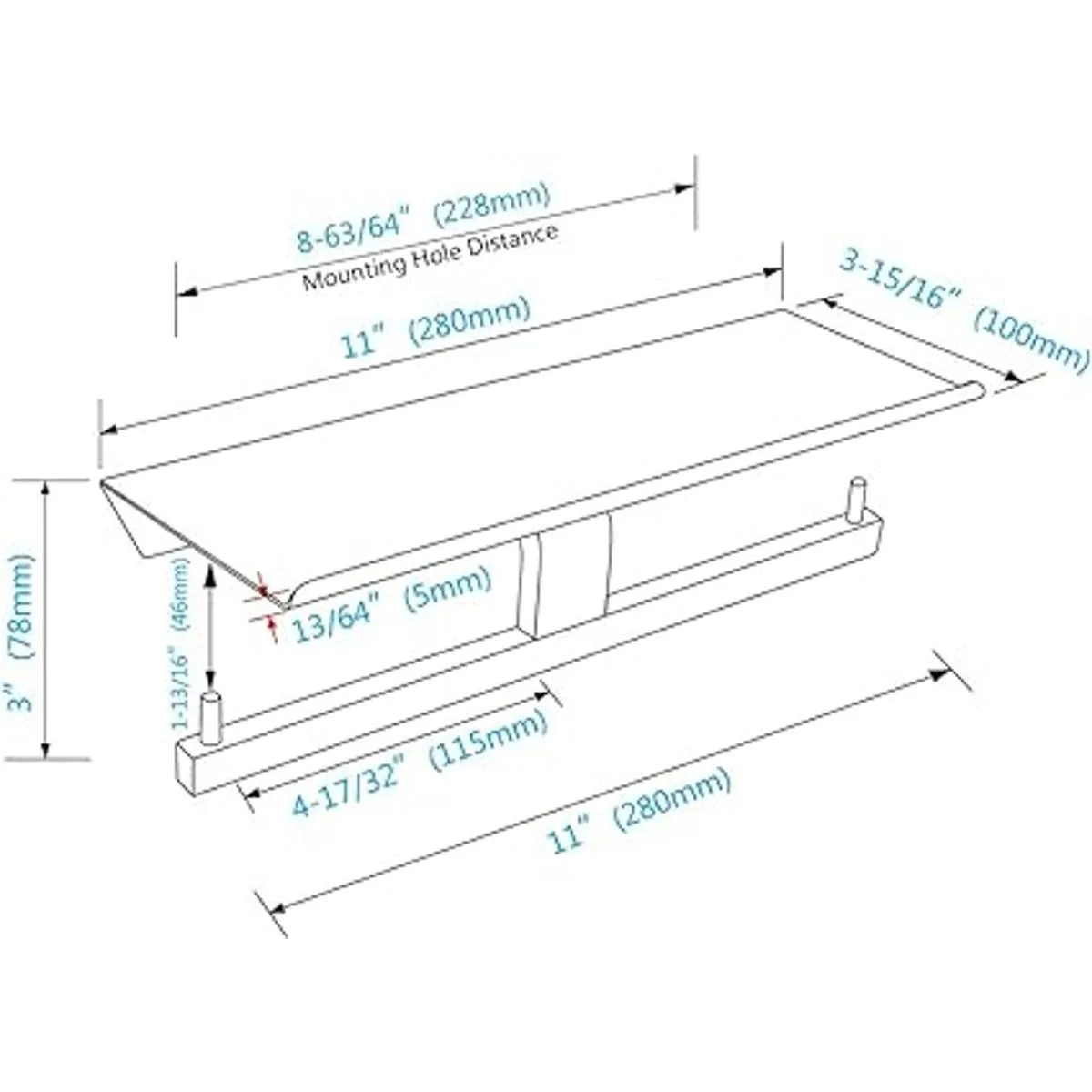 Dimensiones: 11 pulgadas de largo x 3.9 pulgadas de ancho x 3 pulgadas de alto, estante superior grande para sostener teléfono móvil, altavoz Bluetooth, afeitadora y otras cosas. El borde doblado hacia arriba evita que el teléfono celular y las cosas se resbalen