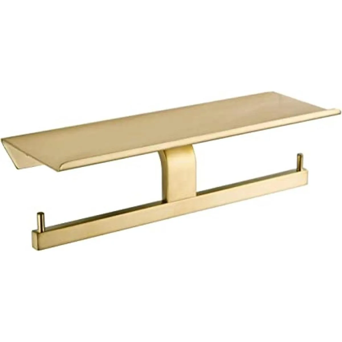 TRUSTMI Soporte de papel higiénico de doble rollo con estante para teléfono, dispensador de pañuelos de acero inoxidable 304, colgador de papel de baño a prueba de óxido, oro cepillado