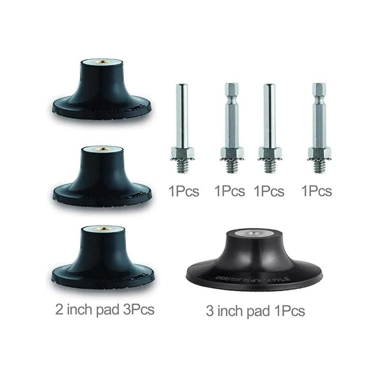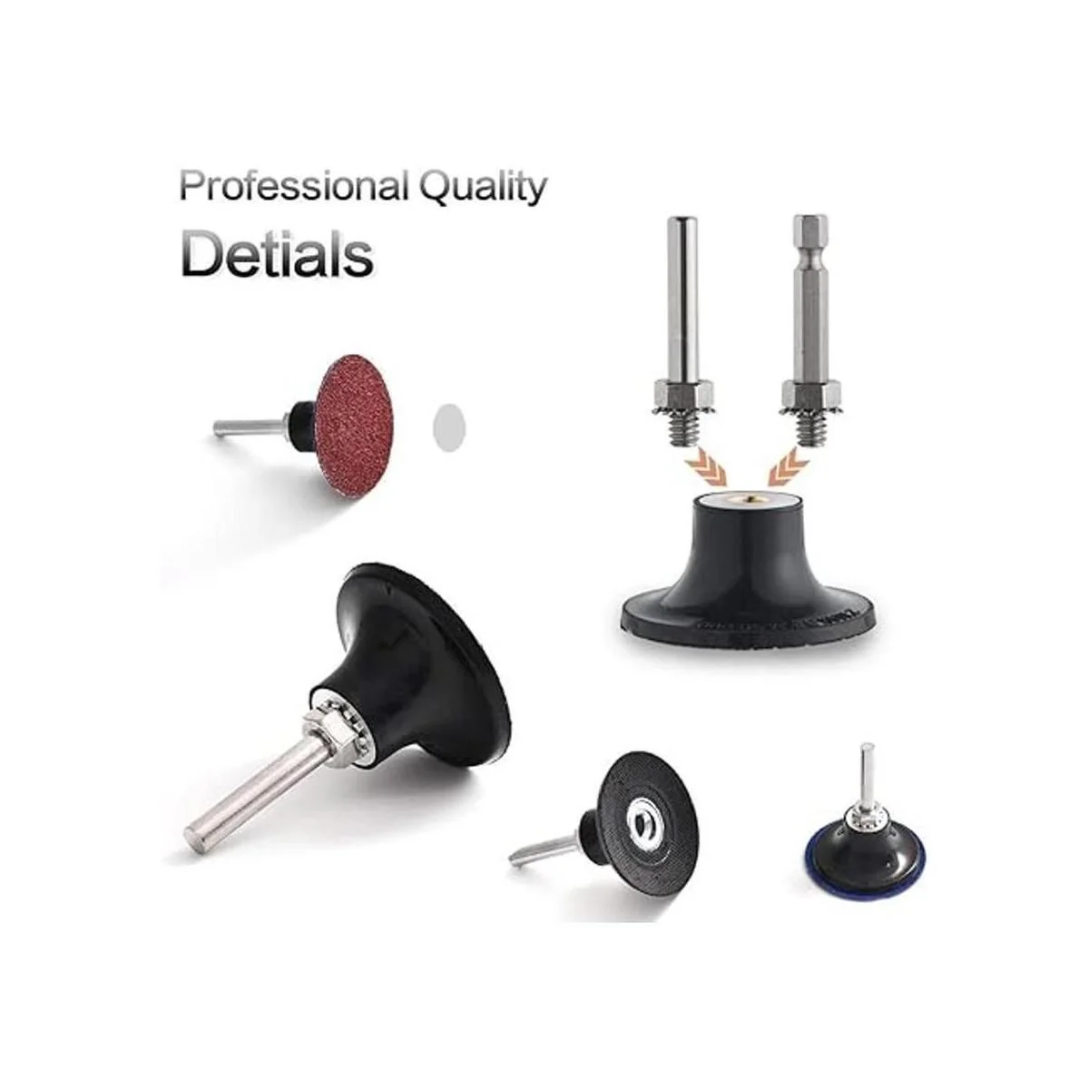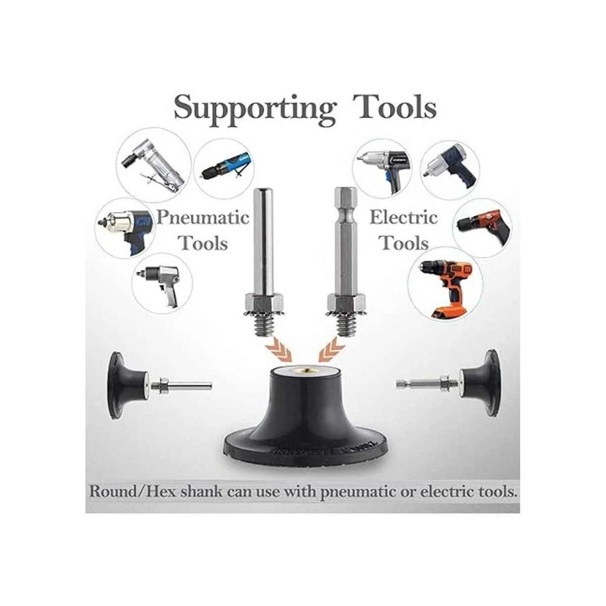 Dos tipos de vástagos: almohadilla de disco de cambio rápido TR/tipo III con vástagos de 1/4 pulgadas, vástago redondo/hexagonal que se puede utilizar con cualquier taladro de aire o eléctrico, amoladora de troquel y otras herramientas giratorias para el máximo control de lijado.