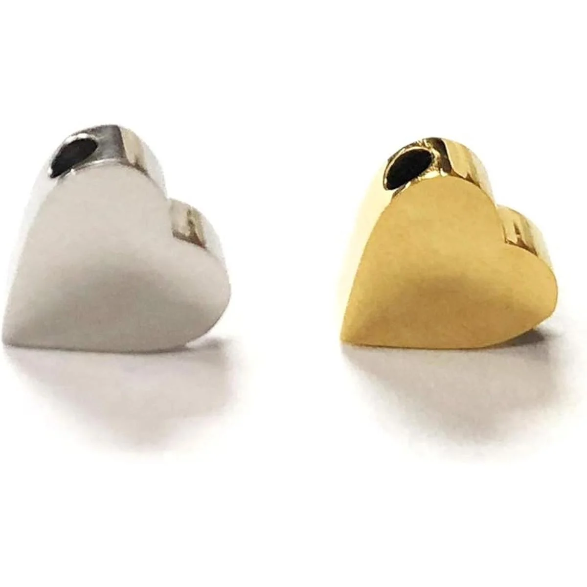 10 cuentas doradas con forma de corazón y 10 cuentas plateadas.