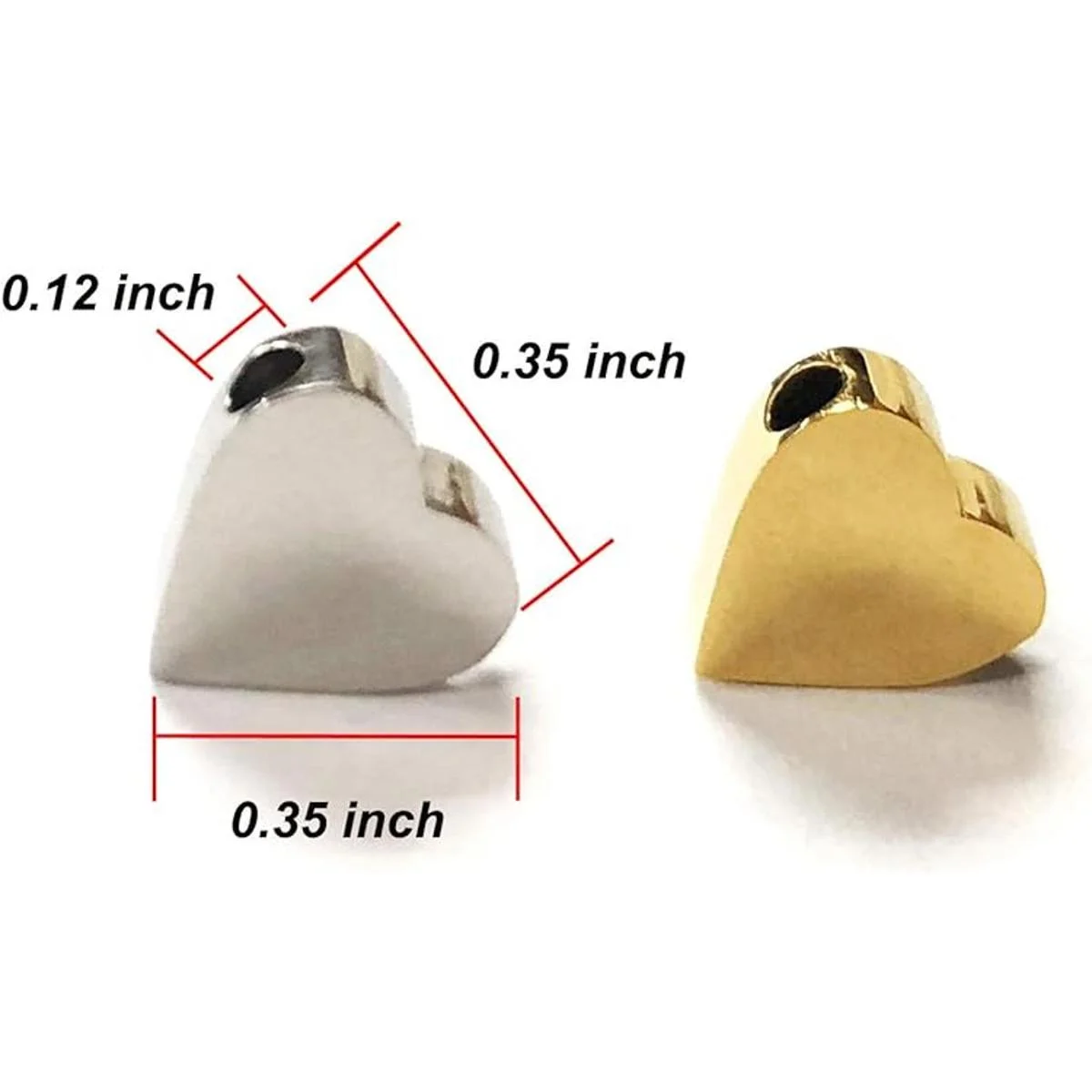 Tamaño del corazón: 0,35 pulgadas; tamaño del agujero: 0,12 pulgadas.