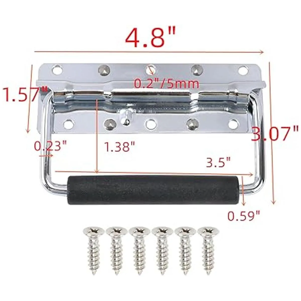 Tamaño total: 4.803 x 3.071 in largo x ancho. Ancho inferior: 1.575 in. Diámetro del agujero: 0.197 in, 6 agujeros, alrededor de 5.89 oz/unidad, muy firme, resistente mango de resorte de equipaje
