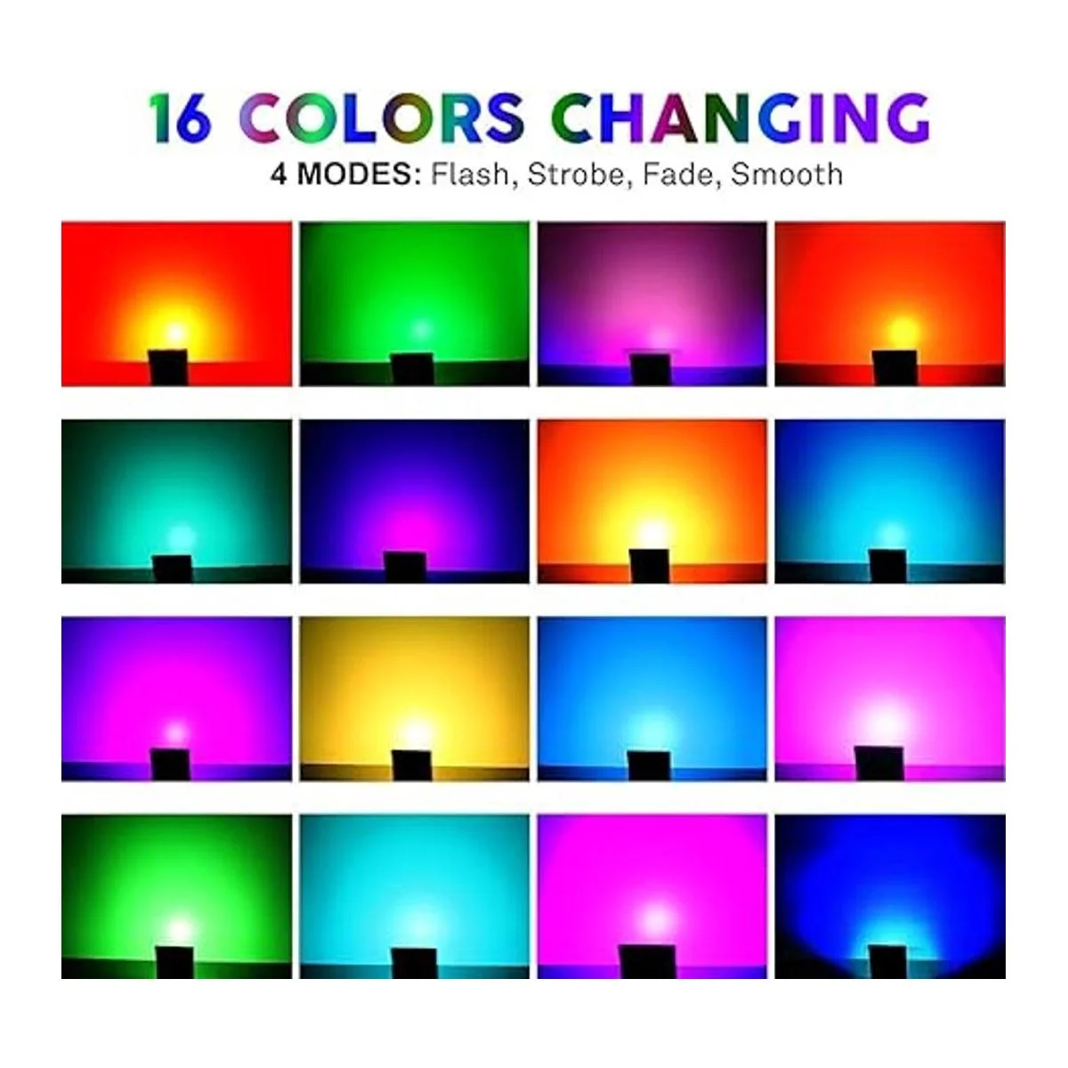 Cambio de color: puedes cambiar de color para crear diferentes ambientes para tus necesidades. 4 colores principales rojo, verde, azul y blanco. Total de 16 tonos de color diferentes que proporcionan una iluminación colorida y brillante jardín, hogar, hotel, paisaje, etc.
