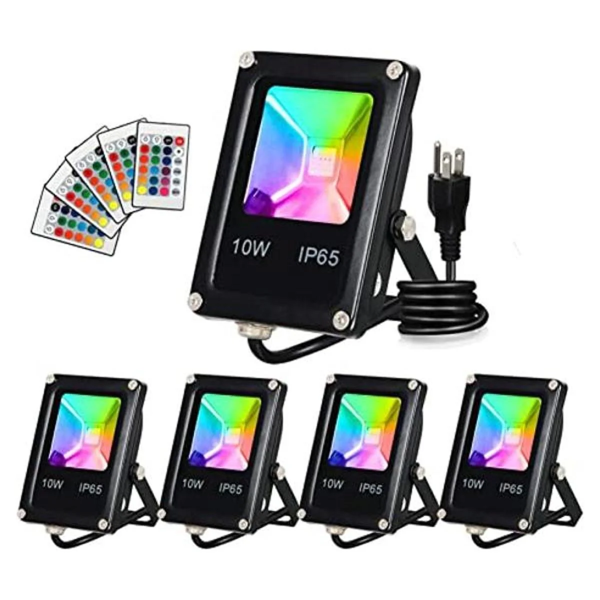 TSUN Luz de inundación LED, luces de seguridad impermeables RGB de 10 W, con enchufe de EE. UU., control remoto súper brillante, foco para exteriores, jardín, patio, acera de almacén, patio trasero, garaje paquete de 5