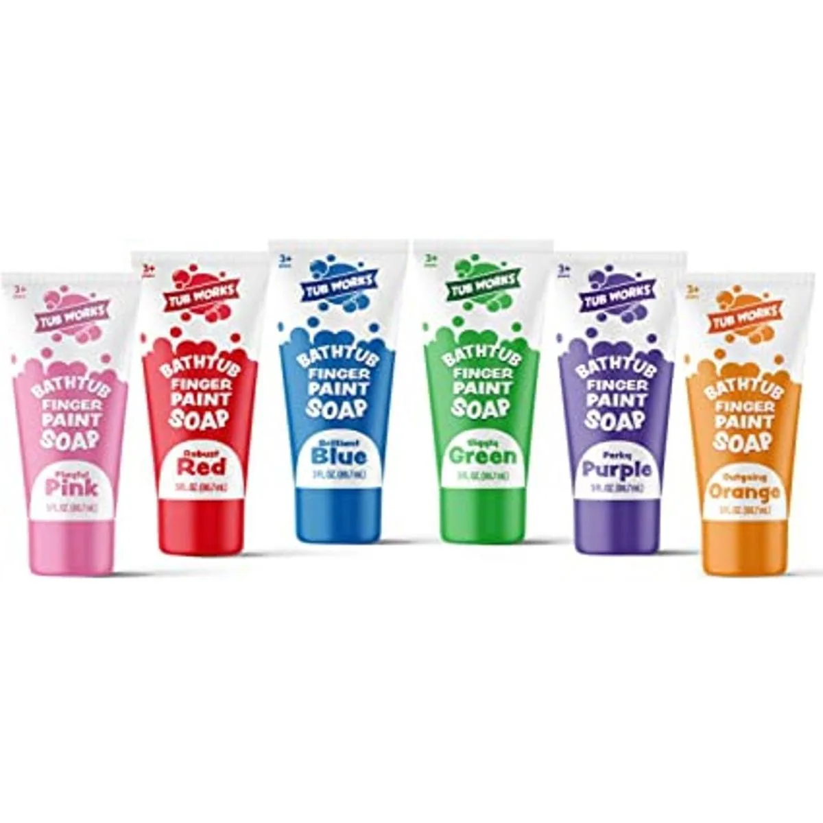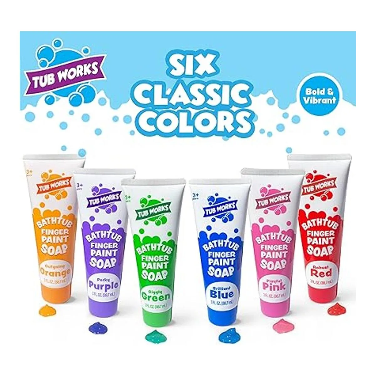 Tub Works Jabón de pintura para dedos, clásico, 6 unidades, no tóxico, pintura lavable para pintura de dedos en paredes de tina, juguetes de baño ideales para juegos creativos, fácil de limpiar, pintura de baño divertida