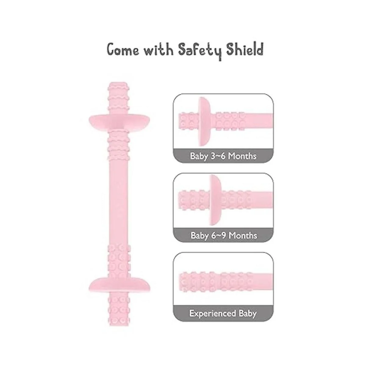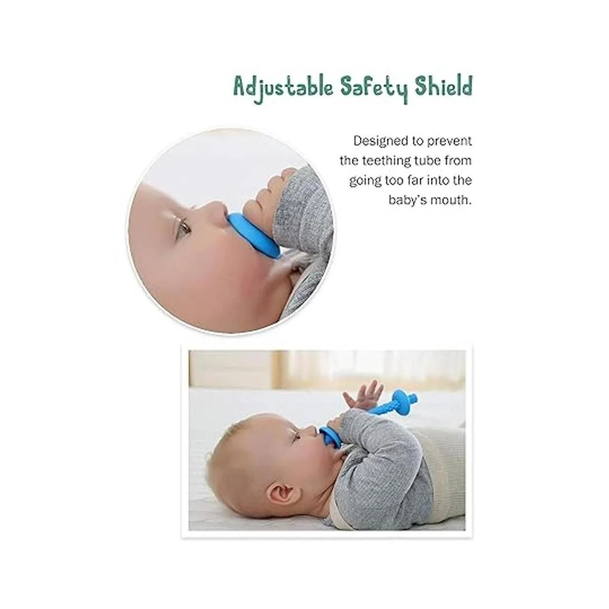 Viene con un escudo de seguridad: incluye un escudo de seguridad extraíble y ajustable que se puede fijar al tubo de dentición para asegurar que el extremo del tubo se mantiene a una distancia segura de la garganta del bebé.
