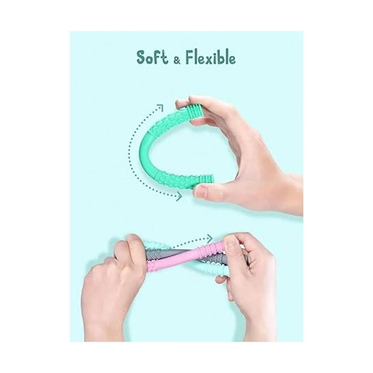 Multitexturas: hay diferentes texturas en cada lado del tubo de dentición hueco, gran experiencia sensorial para la boca del bebé y los preparará para diferentes texturas de alimentos.