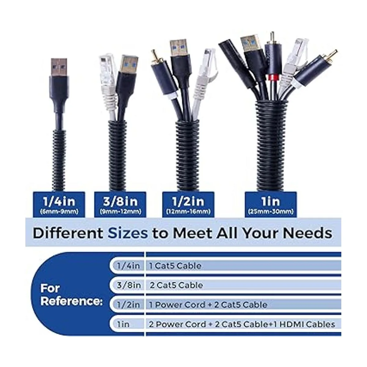 Se adapta a todos los cables: ideal para organizar y proteger cables de alimentación, cableado del sistema de entretenimiento, cables Ethernet, arneses de cables, mangueras pequeñas y conductos de cable. Este tubo flexible no se dobla ni se enrolla y puedes elegir un tamaño más grande si tu cable tiene el mismo diámetro interior que la cubierta que tienes.