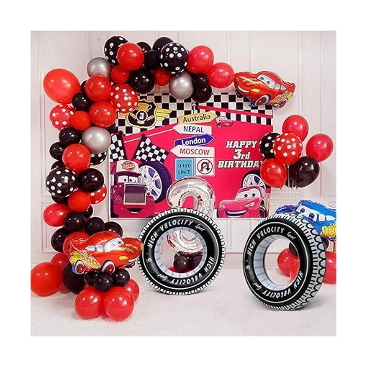 Suministros de fiesta de coche: los flotadores inflables de piscina se pueden utilizar como decoraciones de fiesta de cumpleaños temáticas de camiones, suministros de fiesta de coche de carreras y juguetes para niños en fiesta de cumpleaños. El tubo de natación decorará la habitación temática de coche de los niños.