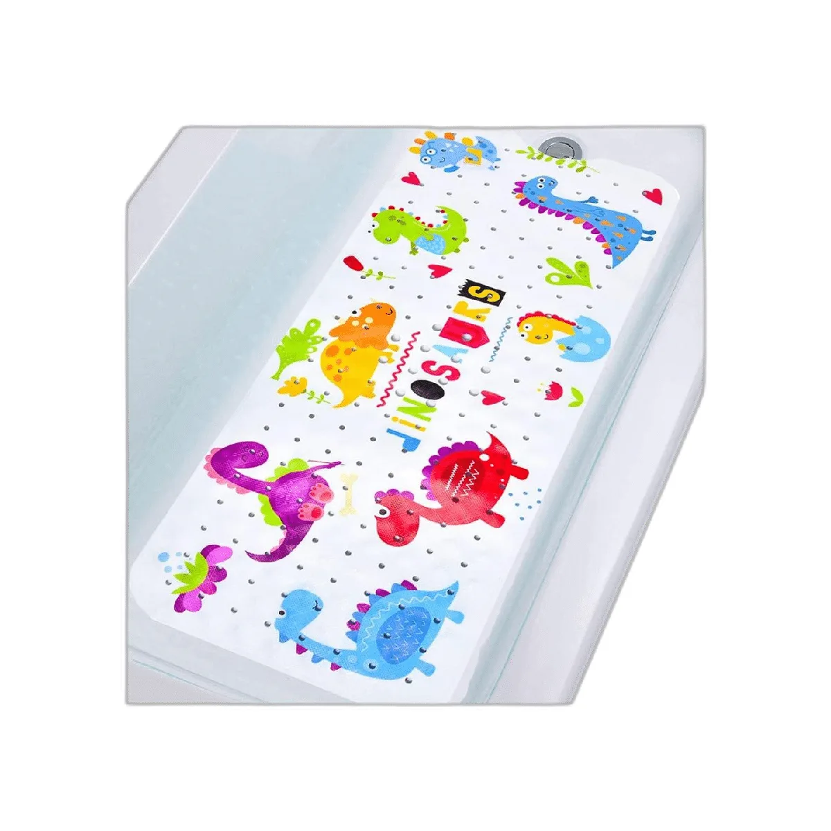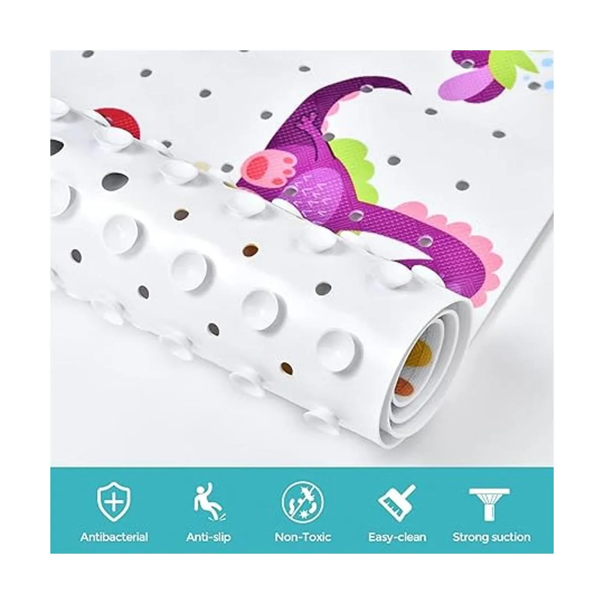 Tubozadi Tapete de baño para bañera para niños, diseño de dinosaurio, antideslizante, para bebé, 40 x 16 pulgadas, antideslizante, con ventosas y agujeros de drenaje