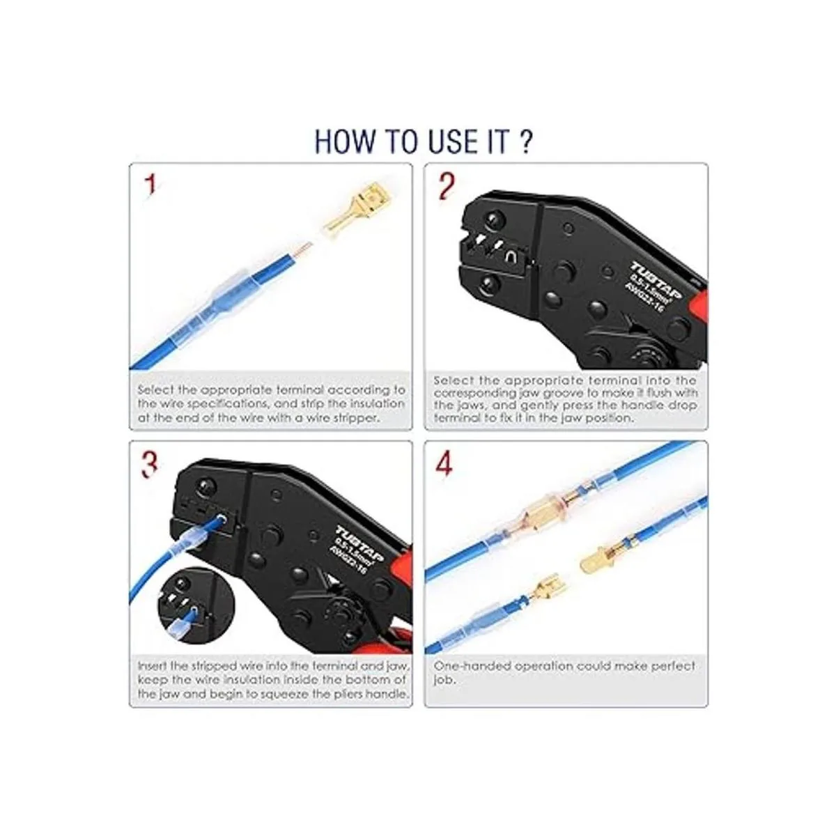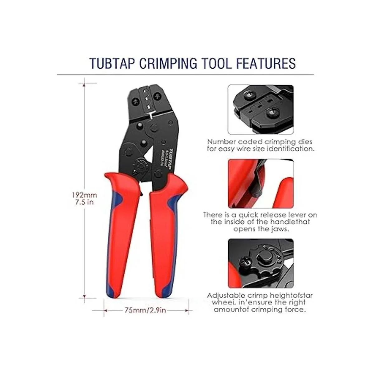 Solo para conectores de bala de pala. Material de alta calidad: estas crimpadoras de alambre TUBTAP están hechas de acero de alto carbono y goma aislante de TPU, mango ergonómico antideslizante que proporciona la máxima comodidad y reduce la fatiga de la mano. Una herramienta de crimpado de alambre perfecta para conectores macho y hembra.