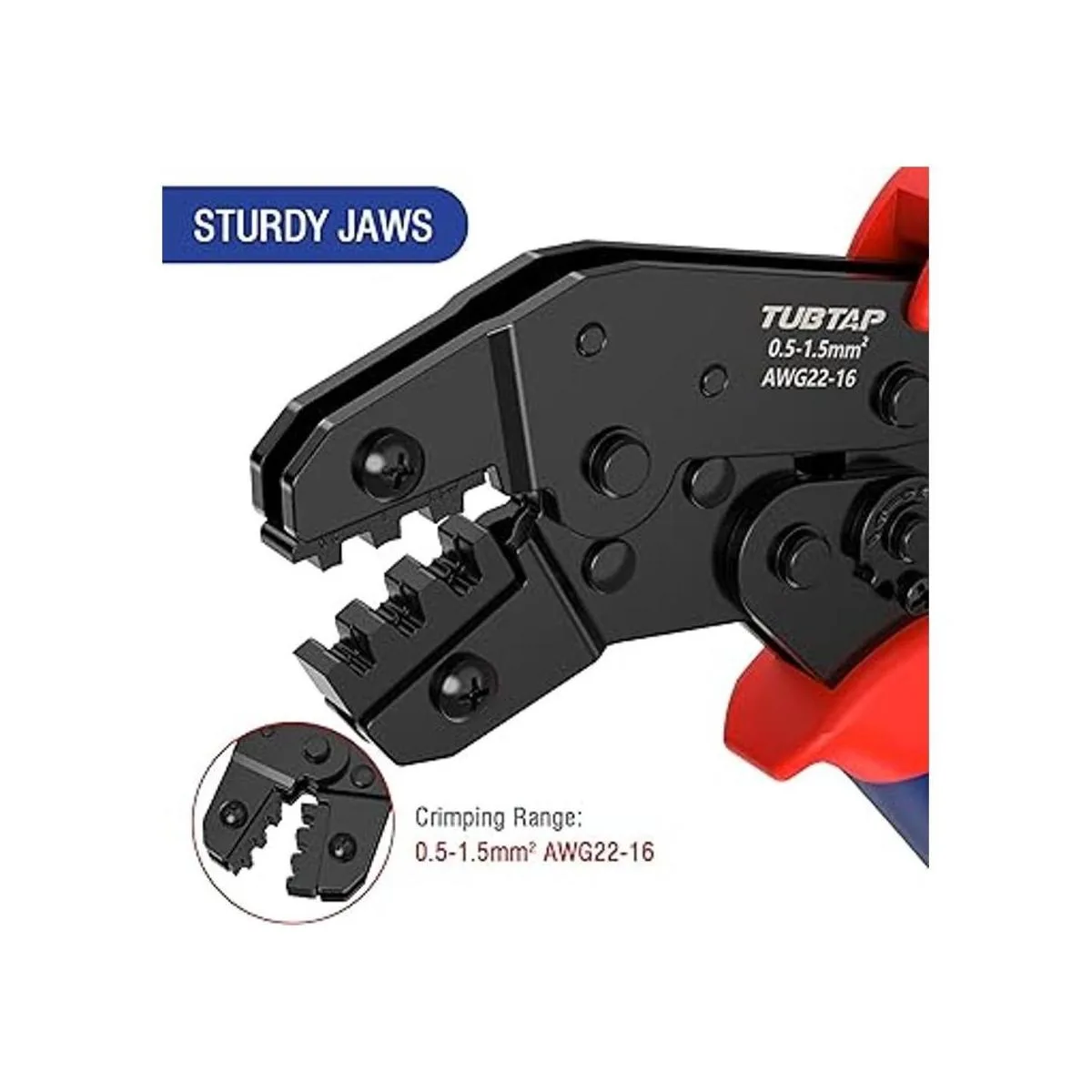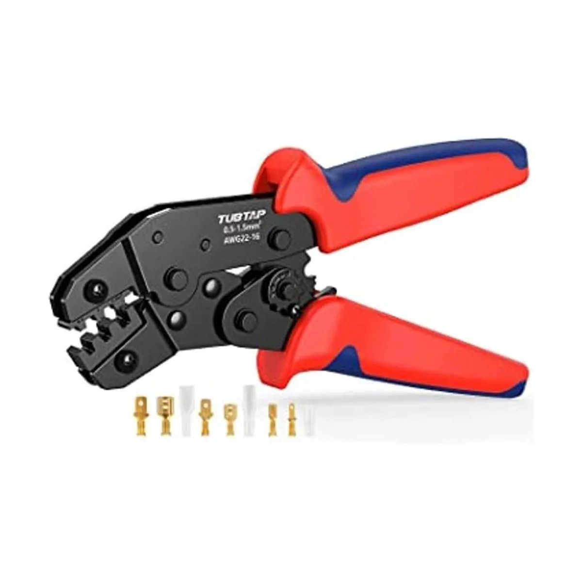 TUBTAP Herramienta de crimpado de pines para conectores de bala de pala AWG 2216 0.51.5 mm, crimpadora de terminales de pasador de trinquete, herramienta de crimpado de alambre para conectores de clavijas macho y hembra y terminales de conectores de bala