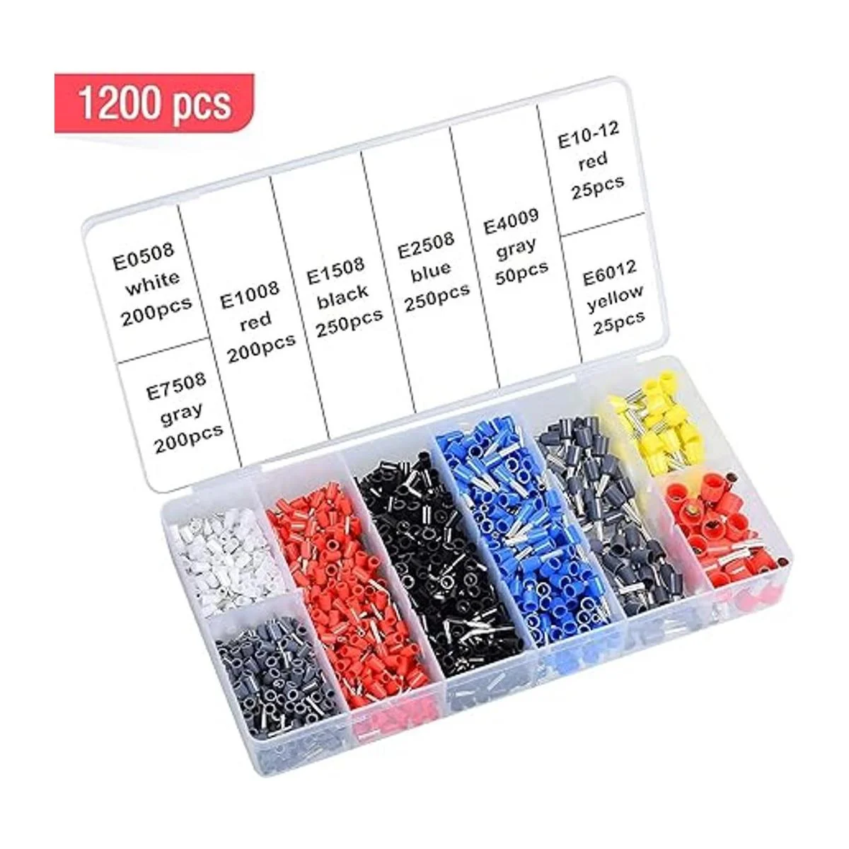 Práctico juego de extremos de alambre: en la práctica caja de clasificación encontrarás 1200 fundas de extremo de alambre de los tamaños más comunes. Se puede cerrar bien y es muy adecuado para almacenamiento y transporte