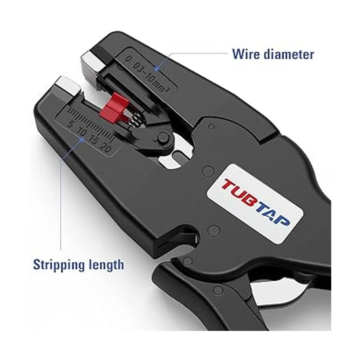 TUBTAP El pelacables automático funciona para un solo conductor de 7 a 32 AWG trenzado o sólido, rango de longitud de pelado de 0.25 a 0.75 pulgadas, trabajando en muchos tipos de cables