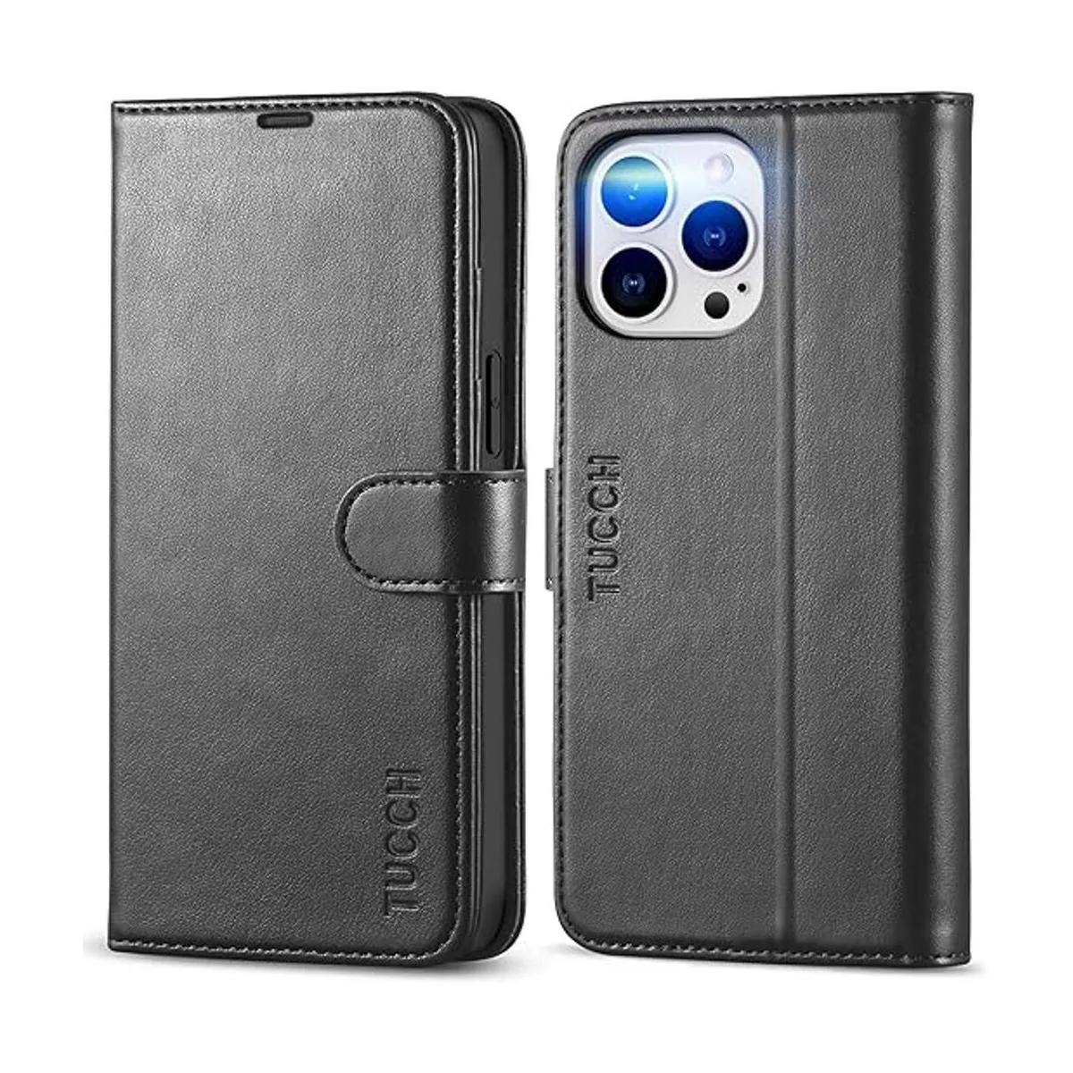 TUCCH Funda para iPhone 14 Pro Max, funda tipo cartera con bloqueo RFID, soporte para 4 tarjetas funda interior de TPU a prueba de golpes Funda protectora magnética de piel sintética compatible con iPhone 14 Pro Max de 6.7 pulgadas, color negro