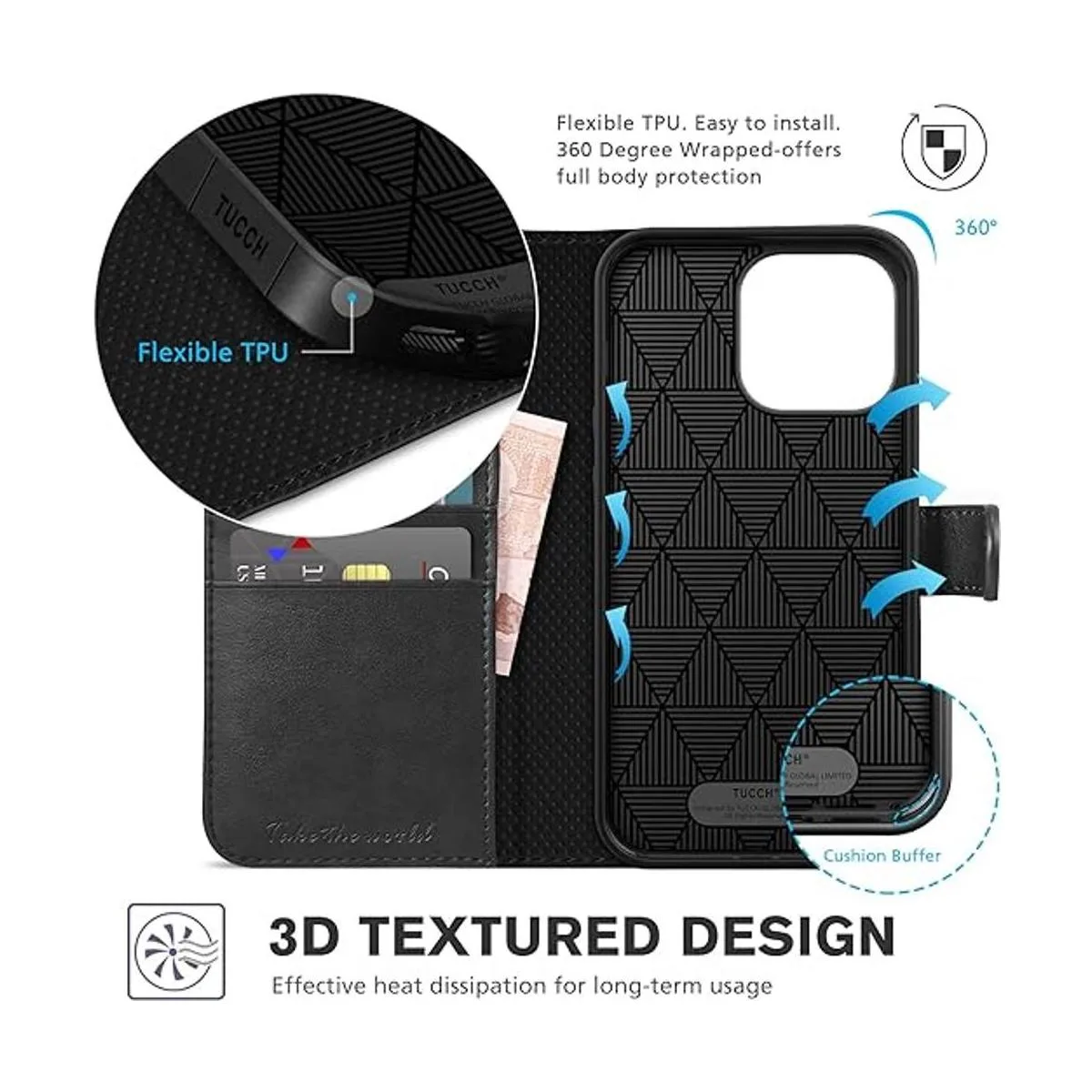 Protección integral: la funda de piel con tapa para iPhone 14 Pro Max cubre todas las esquinas y proporciona una gran protección de doble capa a tu smartphone. La funda interior de TPU suave y duradera viene con un borde acolchado a prueba de golpes y garantiza que tu teléfono esté contra caídas y golpes.