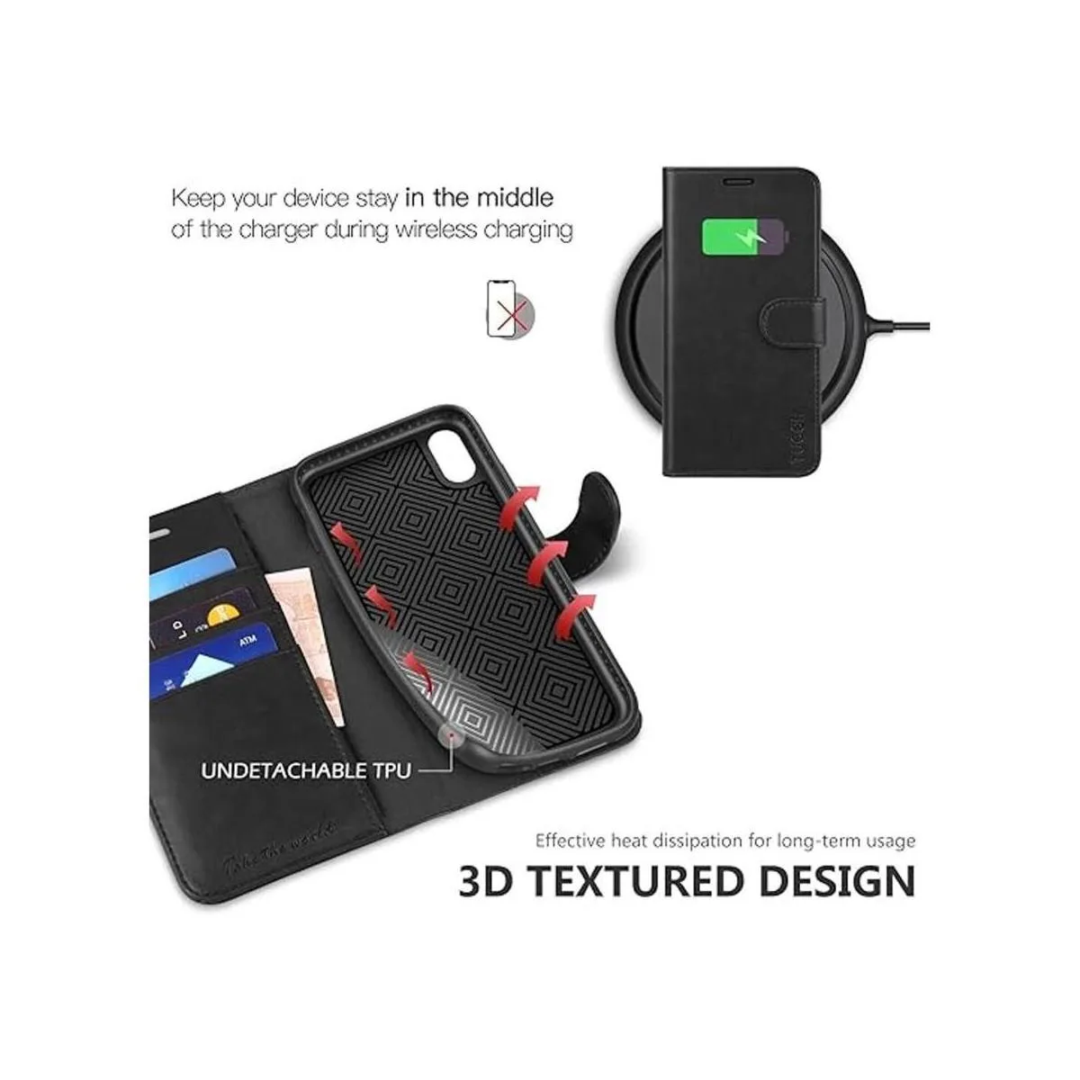 TUCCH Funda tipo cartera para iPhone XR, funda para iPhone XR, funda de piel sintética de alta calidad carcasa de poliuretano termoplástico a prueba de golpes, con ranura para tarjeta de crédito, carga inalámbrica compatible con iPhone XR 6.1, color negro