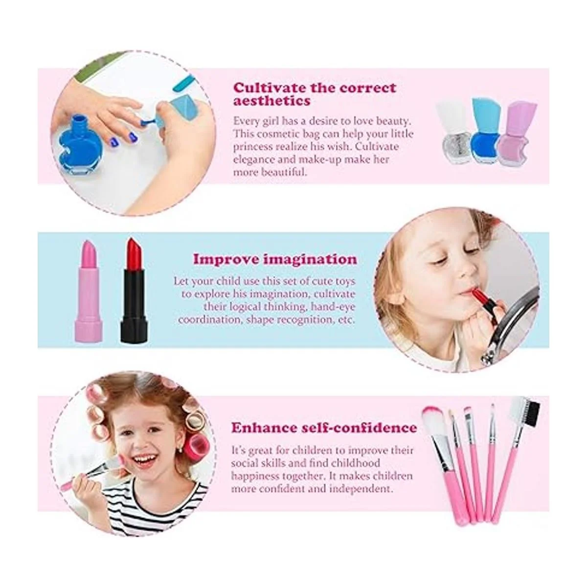 Especialmente para cualquier ocasión: ya sea un viaje o un baile de vacaciones, coloca todo el maquillaje de nuevo en la bolsa de cosméticos y llévalo sobre la marcha. Este juego de maquillaje es un maravilloso juguete para que las niñas se diviertan durante las citas de juego con sus amigos, perfecto para jugar con amigos.