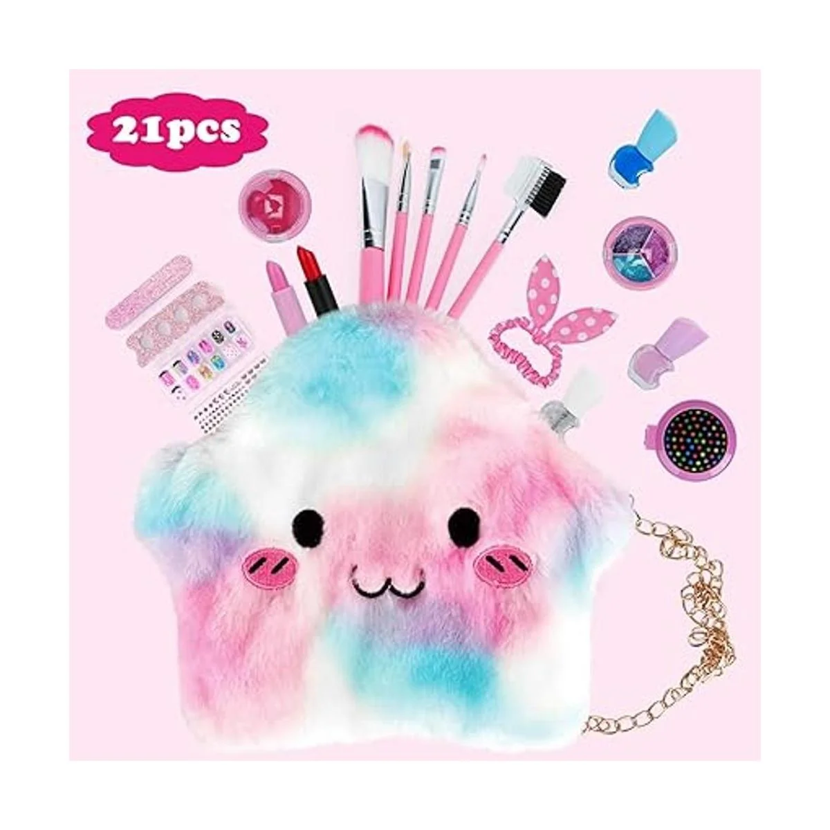 Tudaymol Kit de maquillaje de 21 piezas para niñas, juego de juguetes de maquillaje lavables, maquillaje real kit de maquillaje de Navidad y cumpleaños para niñas para niños