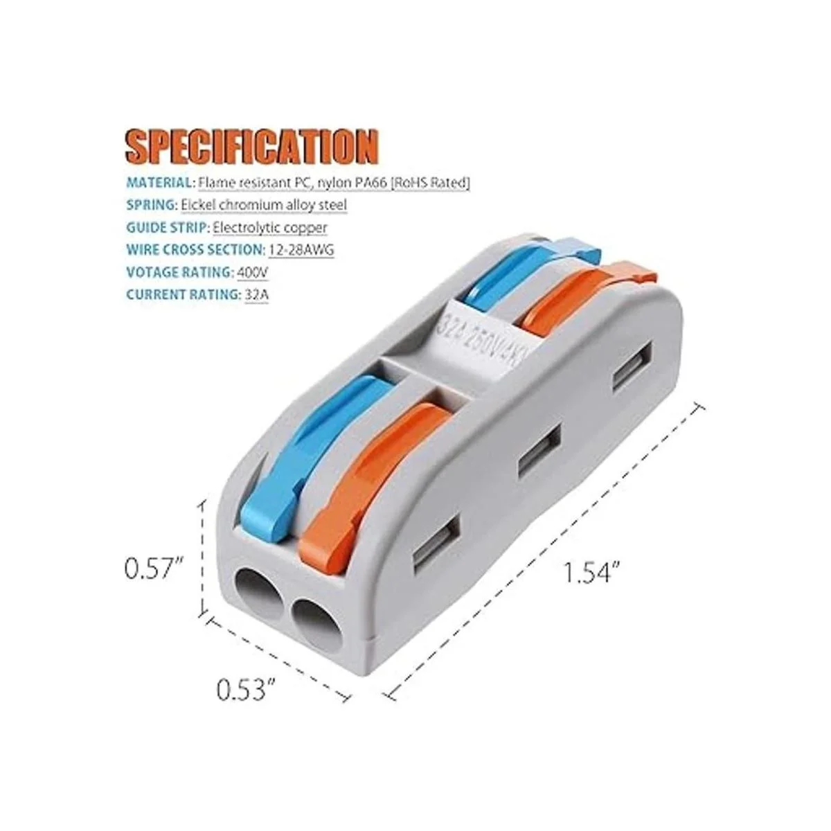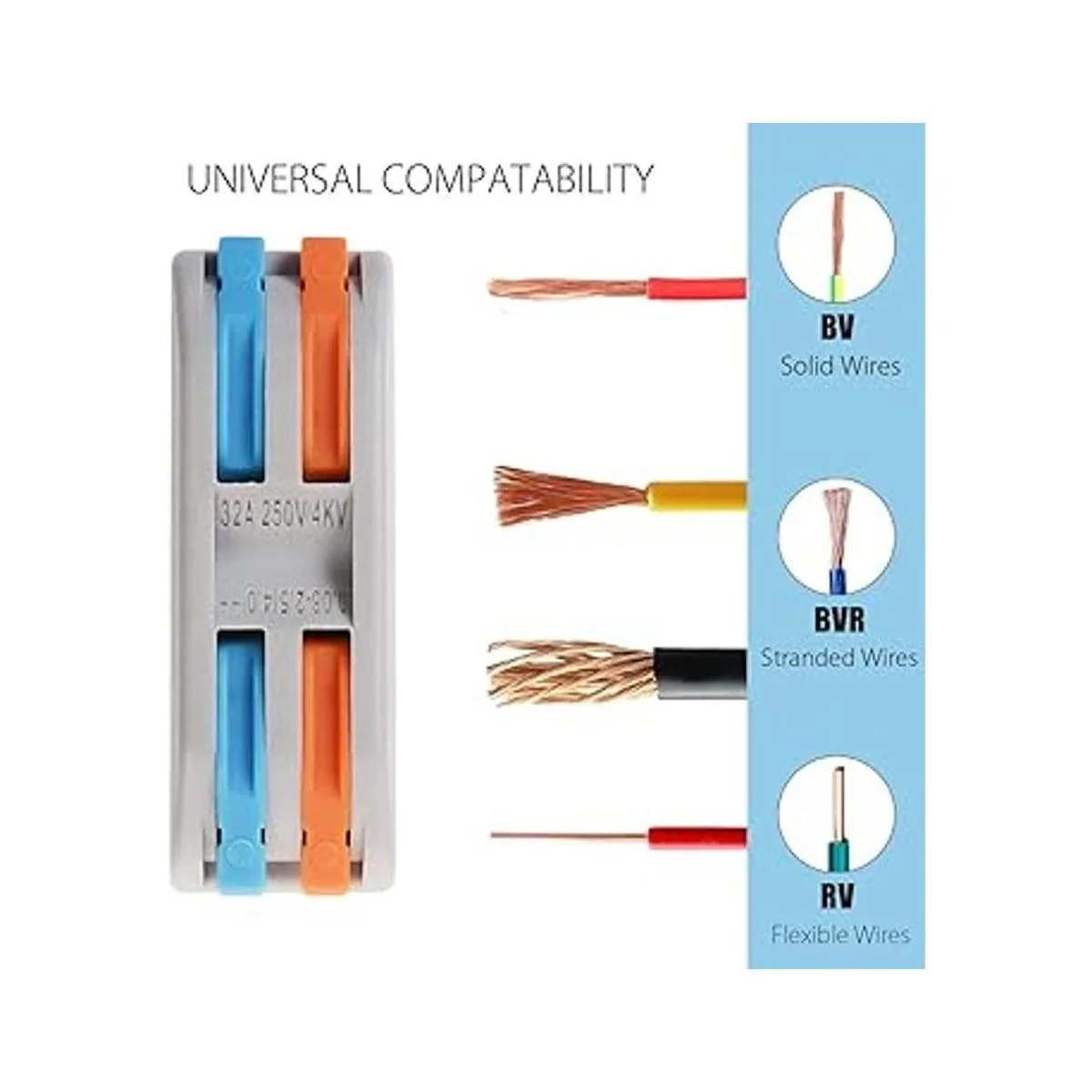 Compatibilidad universal: estos conectores se utilizan para unir cables trenzados y sólidos en diferentes tamaños de 28 a 12 AWG. Funcionan con la mayoría de los indicadores de equipos eléctricos domésticos normales como ventiladores de techo, enchufes, interruptores, coches, barcos, altavoces, lámparas, cajas eléctricas, interruptores de luz, controles de ventilador…