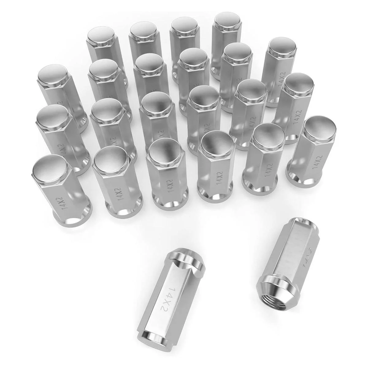 El paquete viene con: 24 tuercas cromadas de bellota de extremo cerrado