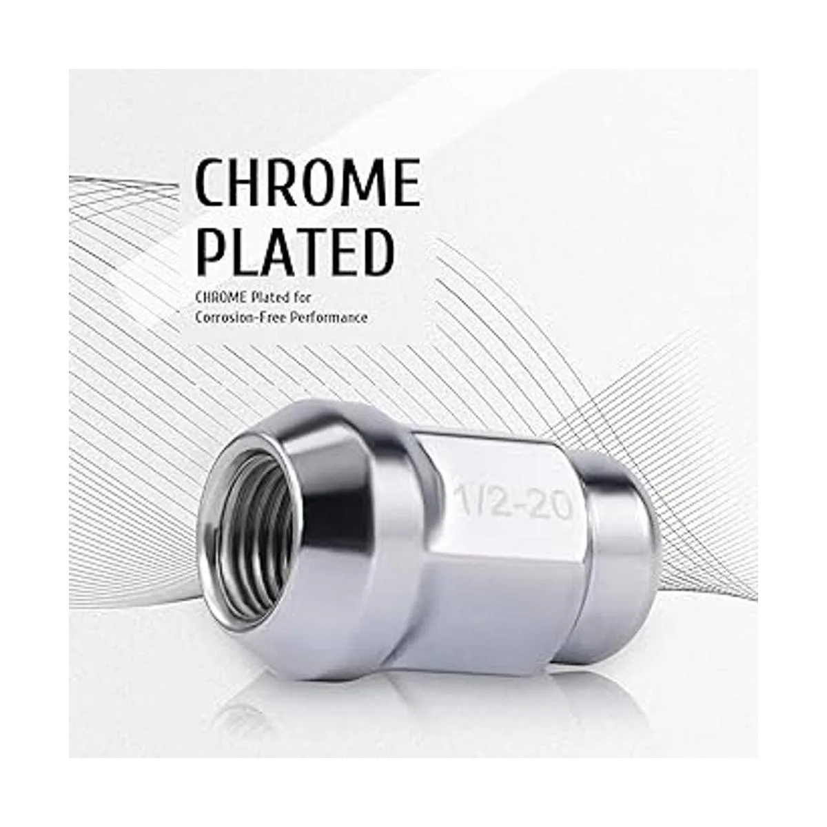 Tuercas de rueda de 12 a 20 con asiento de cono, hexagonal de 34 pulgadas de 0.748 in de 1.38 x 0.87 pulgadas. Tuercas de rueda cromadas compatibles con Ford Mustang Explorer F150 Dodge Ram 1500 Ramcharger Jeep Wrangler y más, juego de 20