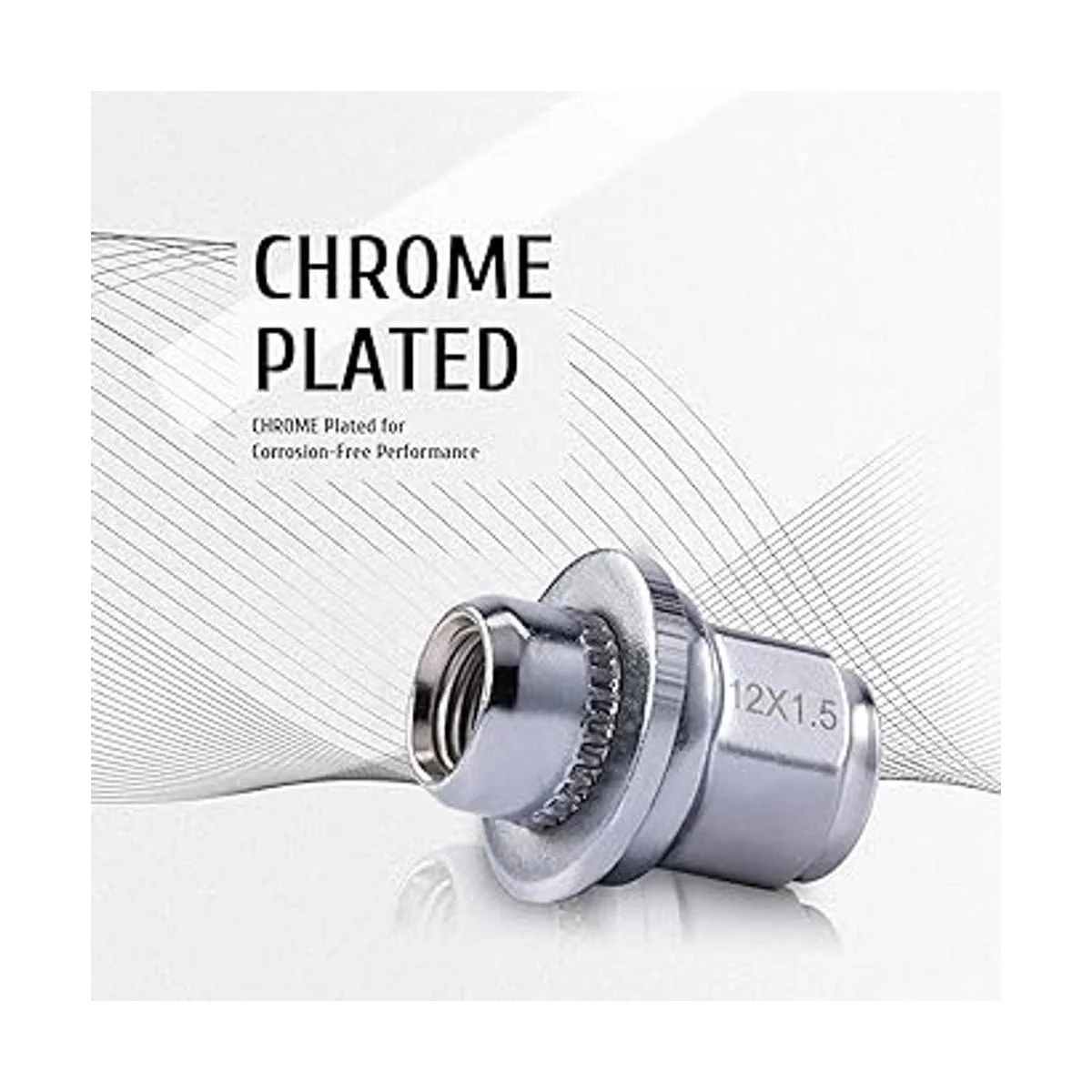 Acero Q235 chapado en cromo: nuestras tuercas de llanta están hechas de una sola pieza de acero Q235 de alta calidad que ha sido forjado en frío y tratado con calor para una resistencia y durabilidad superiores; su chapado en cromo mejora aún más su resistencia a la corrosión