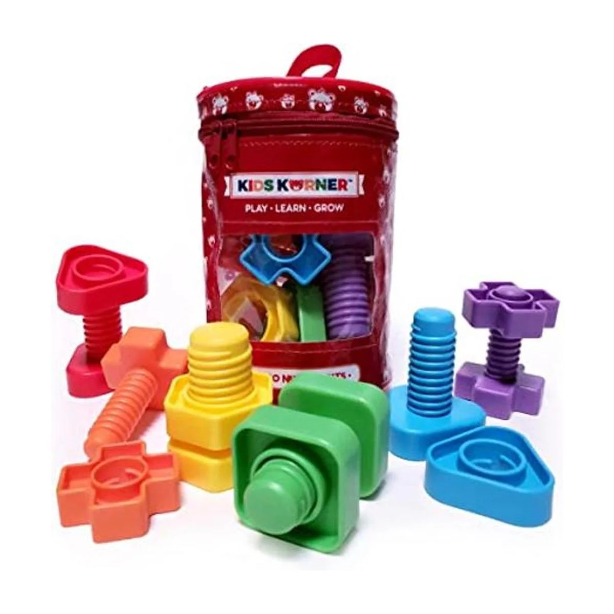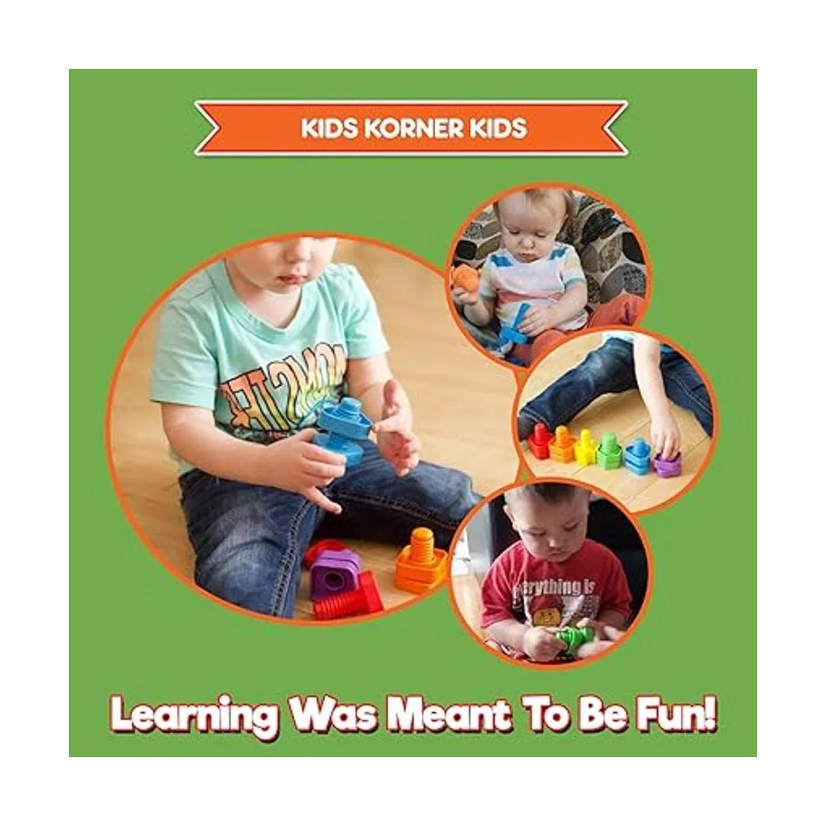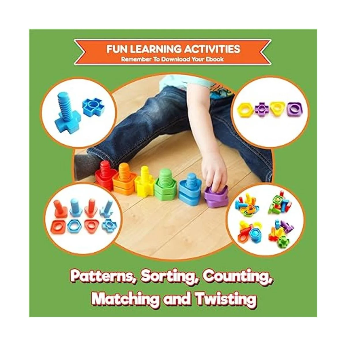 Juegos para preescolares: contar, clasificar y combinar para niños. Hay tantas cosas para aprender con esta actividad preescolar. Aprende sobre colores, formas, clasificación, combinación, matemáticas, patrones y más con el clasificador de formas de tuerca y pernos. Estas tuercas y pernos jumbo son juguetes educativos para niños de dos años, juguetes de niños de 3 años, juguetes de niñas pequeñas y juguetes de aprendizaje preescolar. Sigue cada lección en las actividades de aprendizaje para niños pequeños, descarga el libro electrónico utilizando los manipuladores de matemáticas girando juguetes para jugar y aprender.