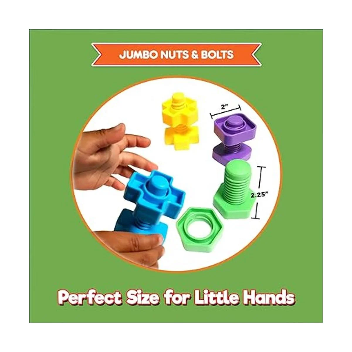 Juguetes de baño para bebé y juguetes de aprendizaje para bebé: los juguetes jumbo de tuercas y pernos y juguetes de aprendizaje para bebés ayudan a desarrollar habilidades básicas para la vida. Estos juguetes Montessori para bebés y juguetes para niñas y niños pequeños son juguetes de habilidades motoras finas que durarán generaciones. Estos pernos de juguete giratorios y tornillos y tuercas y pernos para niños pequeños también son juguetes educativos de un año y son un gran regalo de baby shower o coloridos juguetes para la hora del baño.