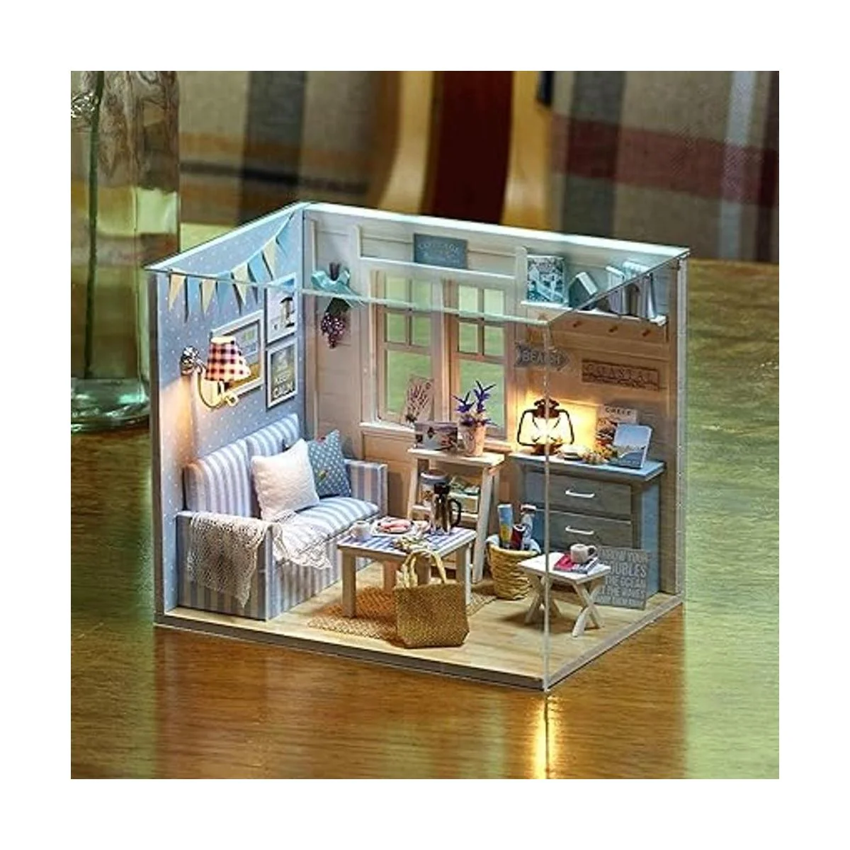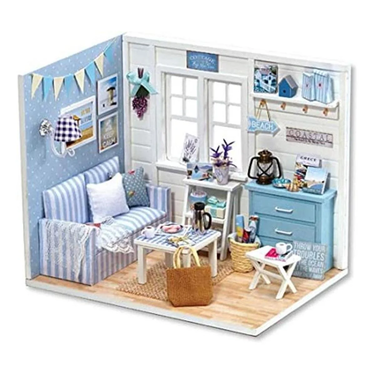 TuKIIE Kit de casa de muñecas en miniatura con muebles, escala 124, mini accesorios de casa de muñecas de madera, a prueba de polvo, para niños, adolescentes y adultos casa de playa