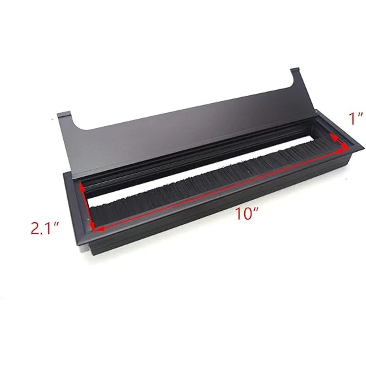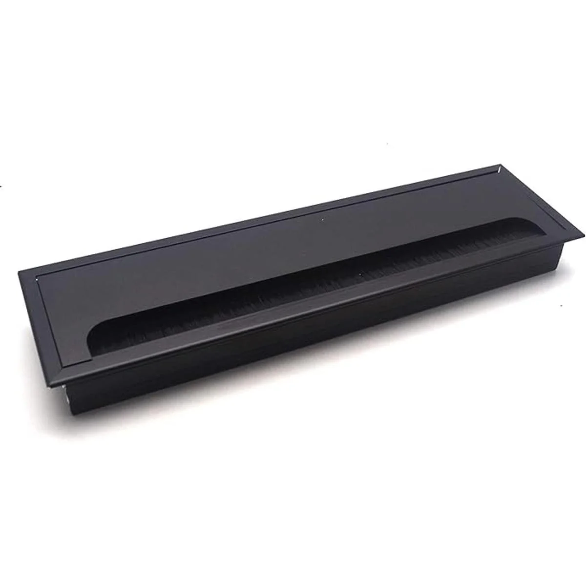 Tulead Cable de 11.4 in con orificio rectángulo para cable de escritorio, placa negra con cerdas
