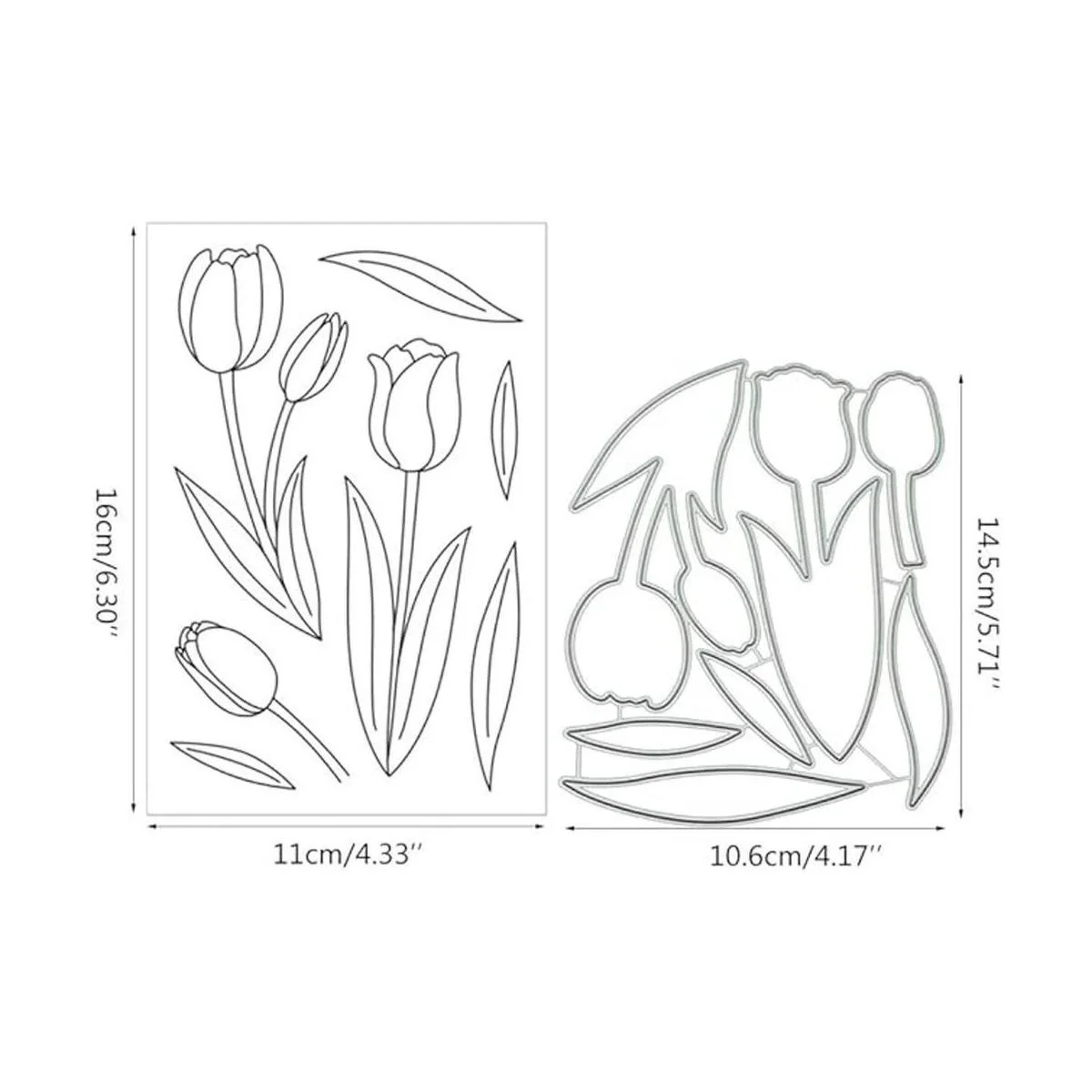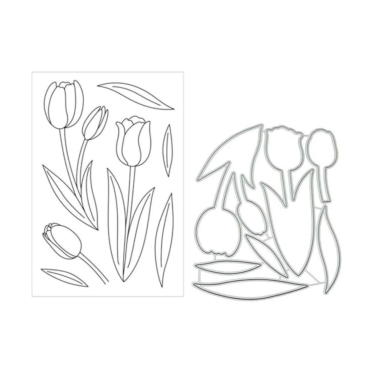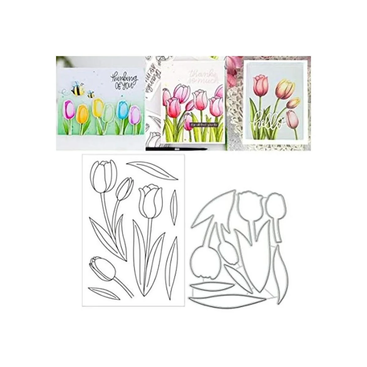 Tulip Juego de sellos y troqueles transparentes de silicona para hacer tarjetas, álbum de fotos en relieve, manualidades decorativas