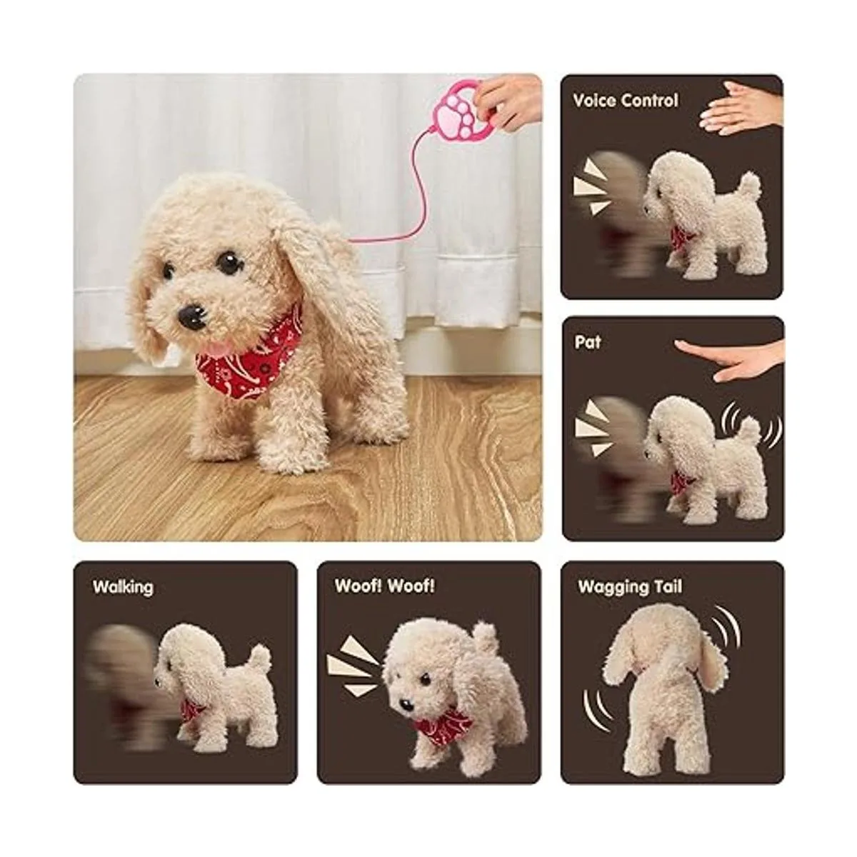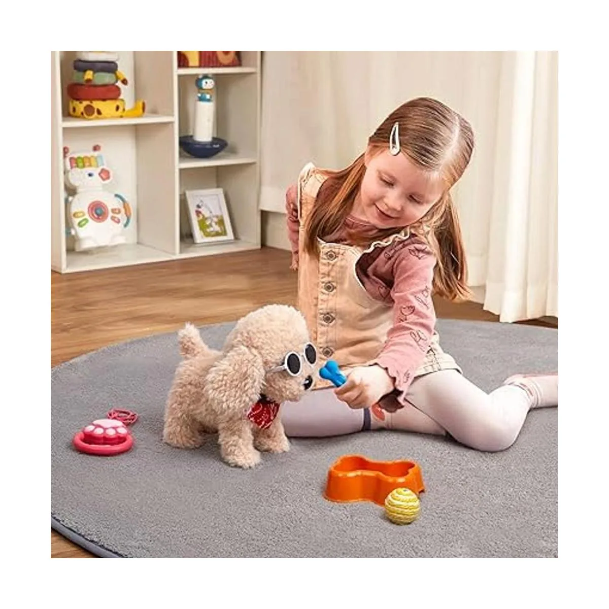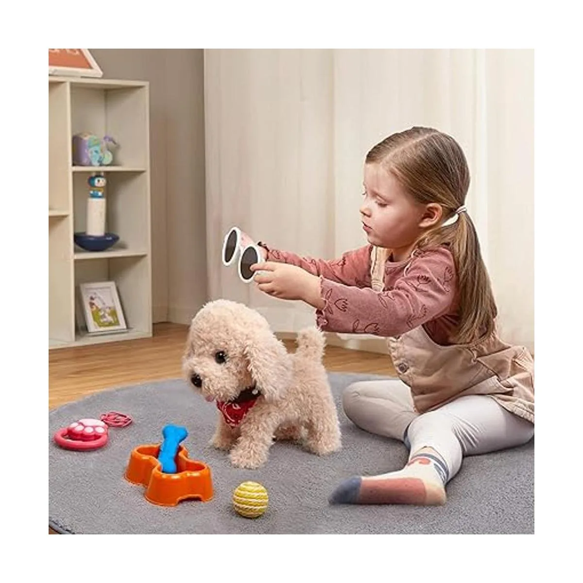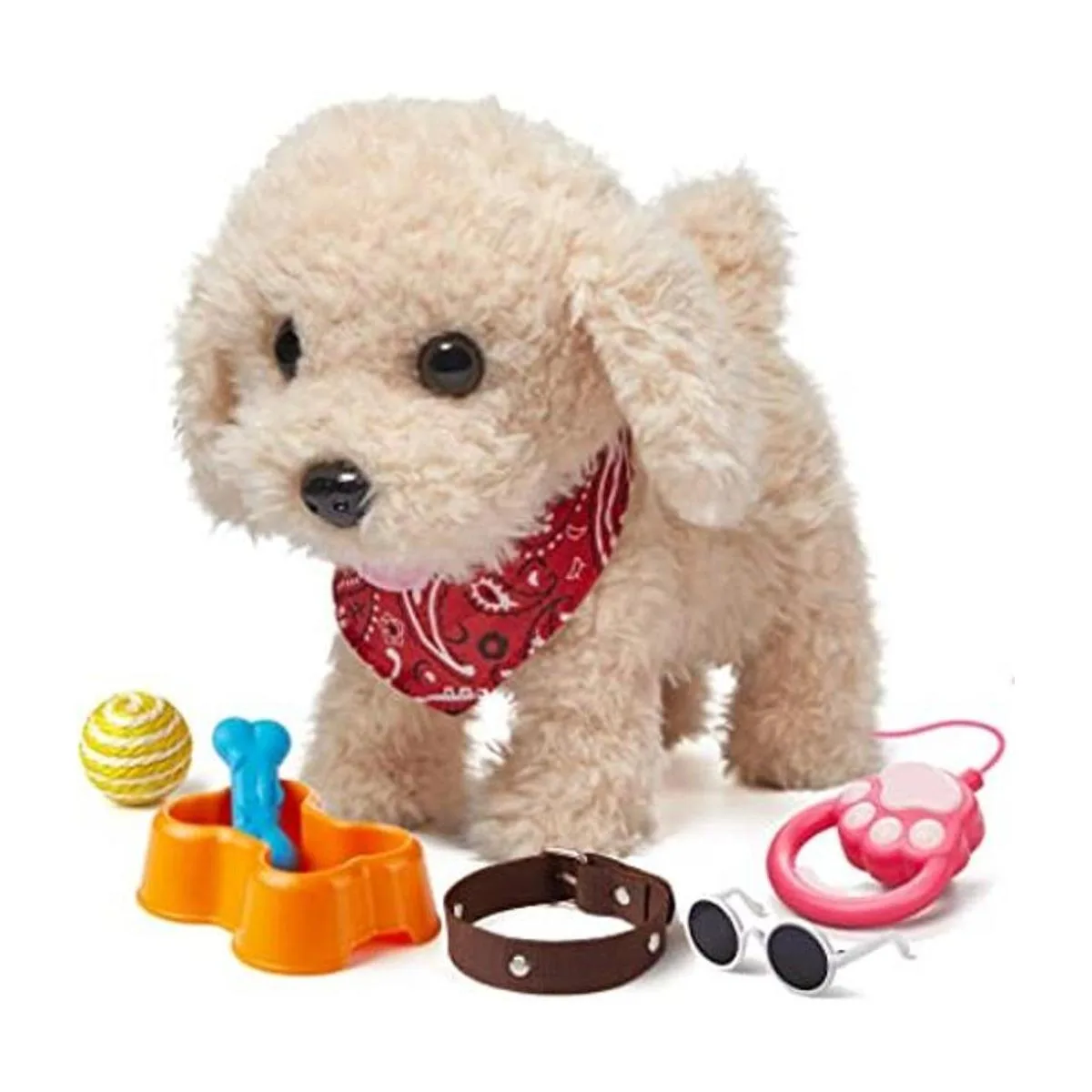 TUMAMA Juguete electrónico de peluche con control remoto, divertidos juguetes interactivos, paseos, ladridos, agitar la cola, vestir a perro de peluche realista, regalo para niñas y niños de 3 a 6 años
