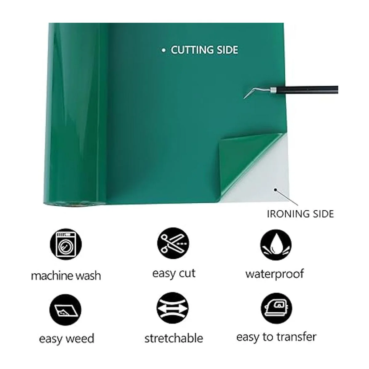 TUMIYA Rollo de vinilo de transferencia de calor HTV Vinilo HTV de 12 x 30 pies, vinilo verde para planchar con diseño de bricolaje para camiseta verde
