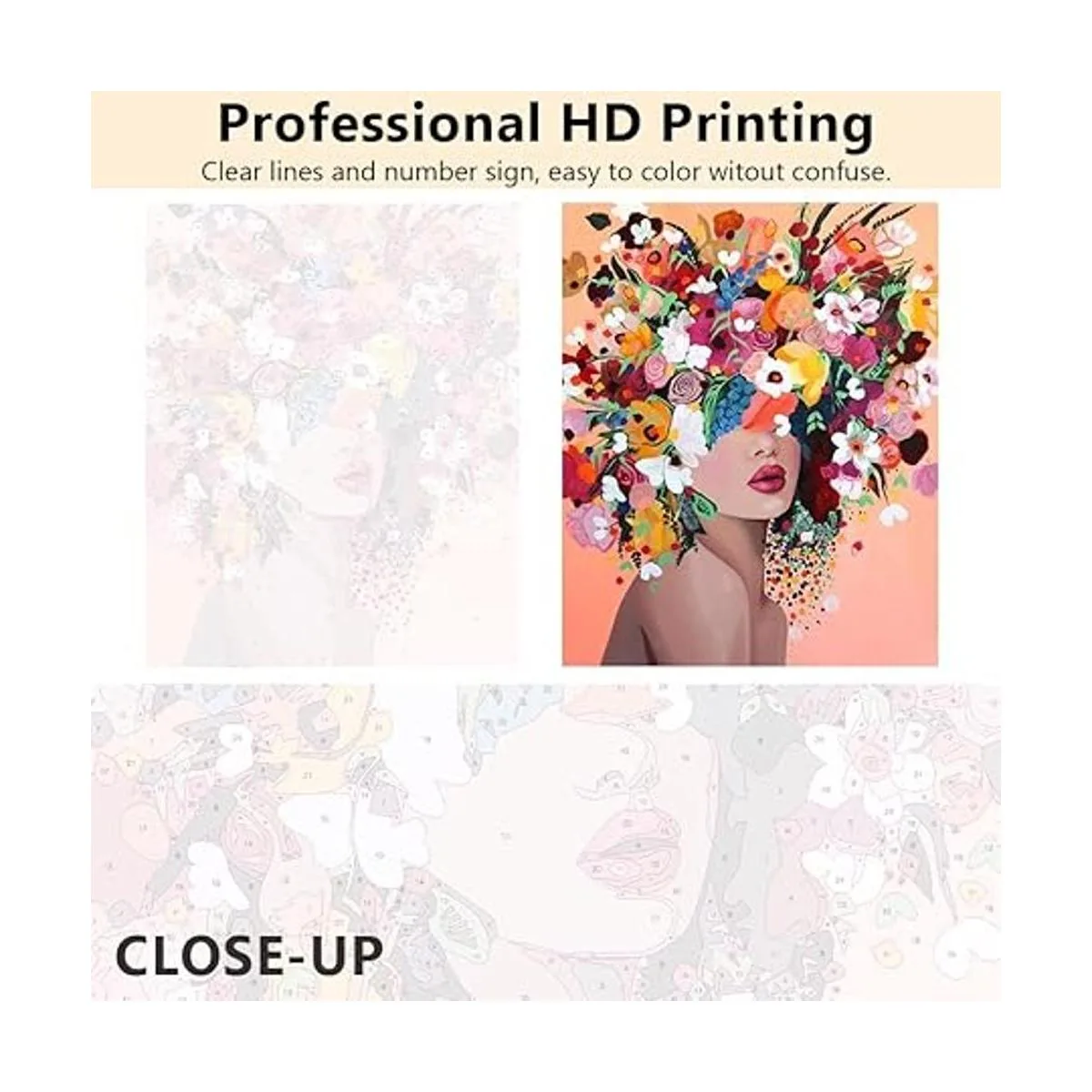 Material ecológico: la pintura para adultos por números adopta pintura acrílica de alta calidad y segura y lienzo de algodón puro. La pintura acrílica es fácil de colorear y evita la decoloración, y el lienzo tiene buena absorción de agua y capacidad de respiración y es fácil de almacenar durante mucho tiempo.