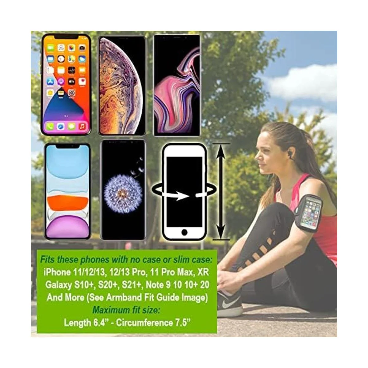 No se adapta a ninguna funda: funda delgada para Apple iPhone 13/13 Pro, 12/12 Pro, 11, 11 Pro Max, XR, XS Max, Samsung Galaxy S10, S20, S21 Galaxy S10, S20, S21 y Note 10, 20. Importante: consulta la imagen de la guía de ajuste del brazalete para ver fácilmente las recomendaciones por teléfono y tamaño de la funda.