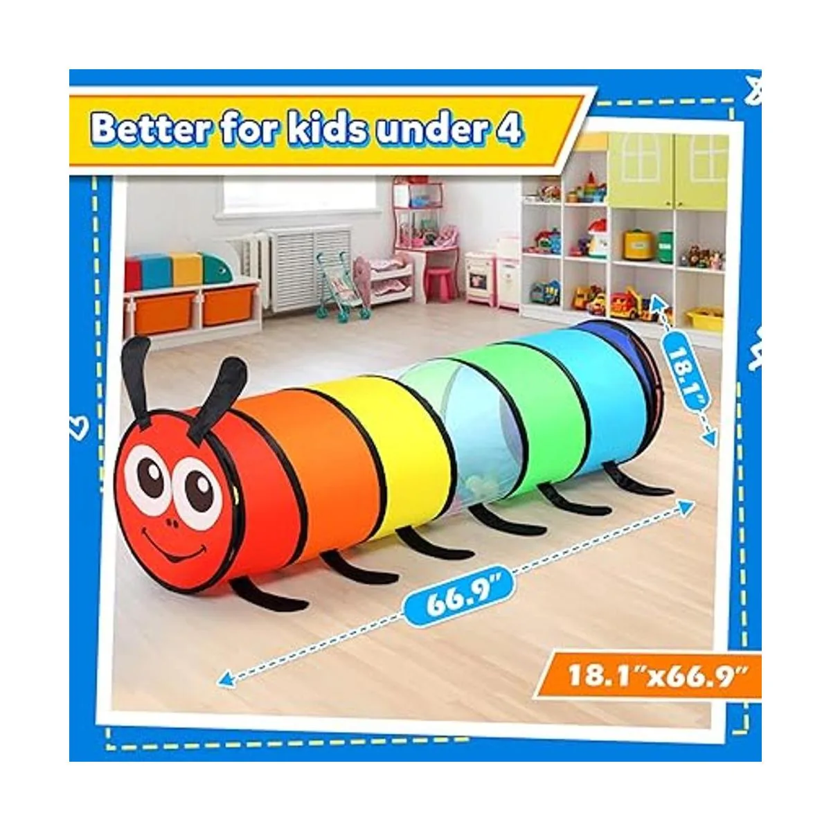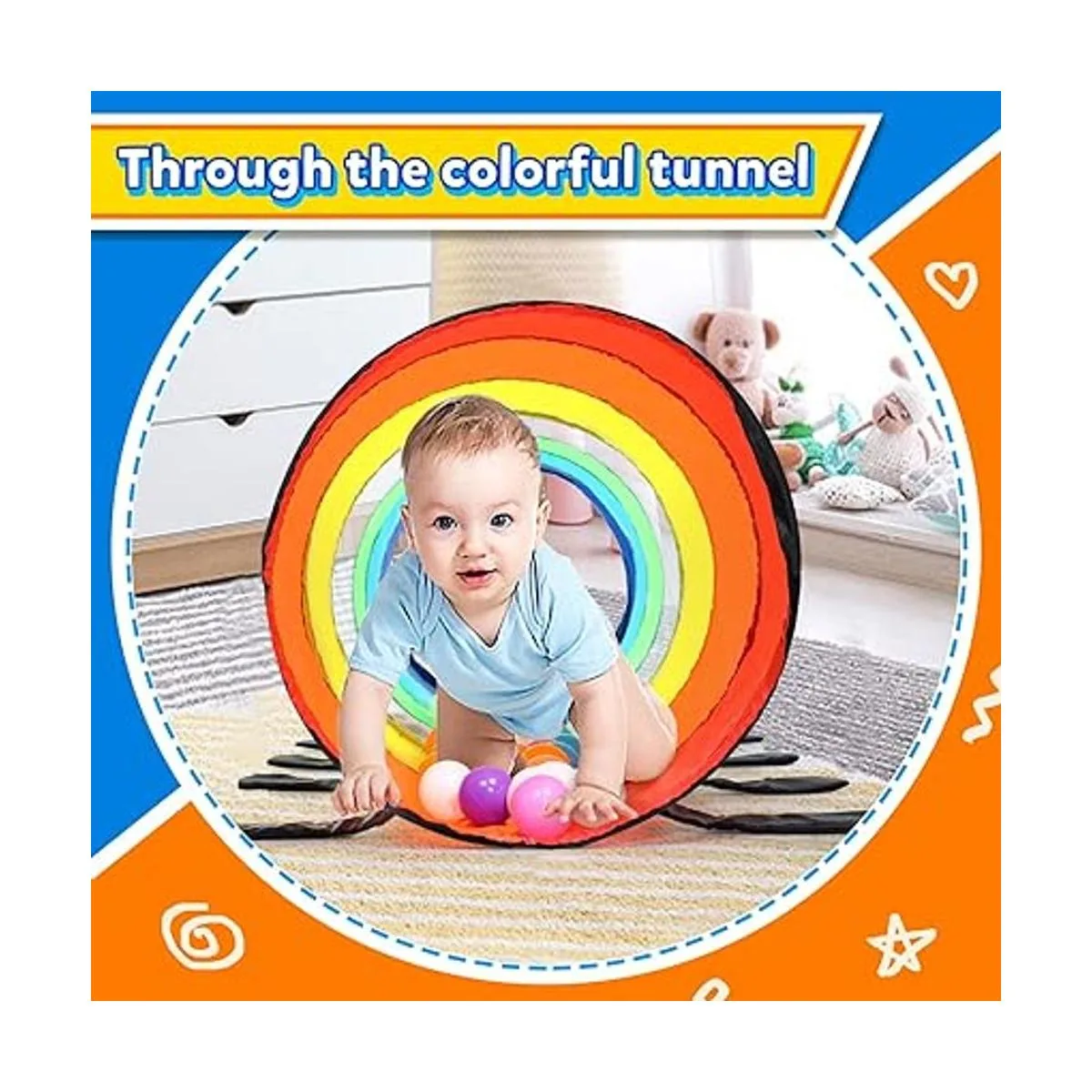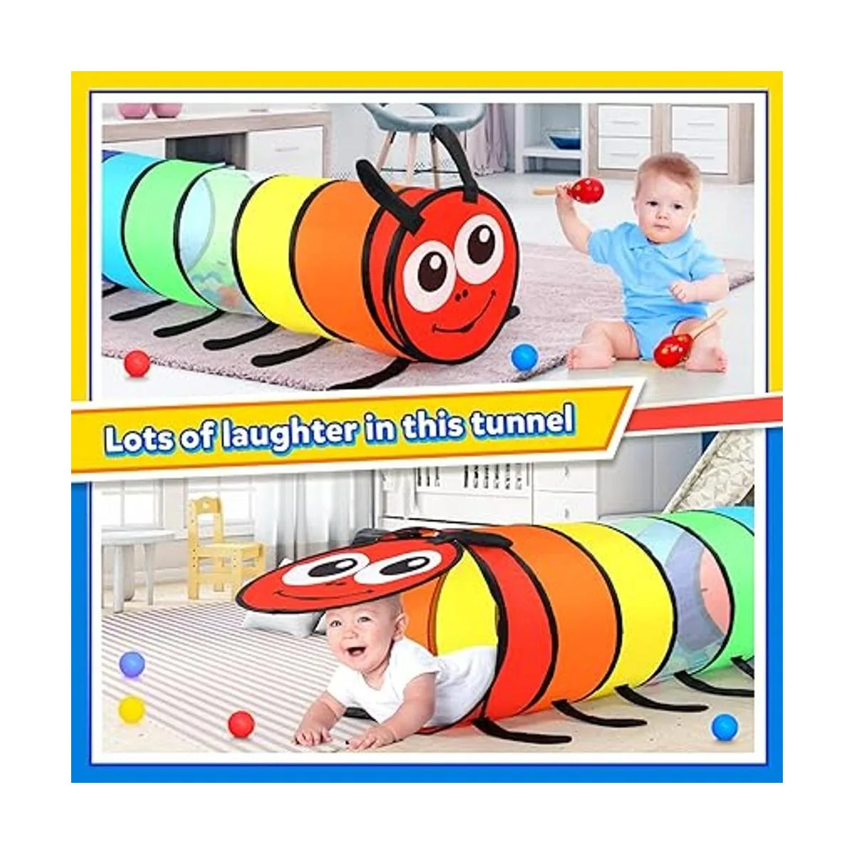 Lo suficientemente seguro: la seguridad para bebés es nuestra principal prioridad en el diseño, por lo que nuestro túnel de juego desplegable para niños está hecho de materiales de poliéster de primera calidad aptos para niños, que son duraderos, suaves y cómodos, los niños pueden jugar libremente en el túnel de juego con tranquilidad. Deja que tus hijos o mascotas disfruten de la diversión de nuestro colorido túnel para niños pequeños tanto en interiores como en exteriores, y pasen un momento maravillosamente feliz.