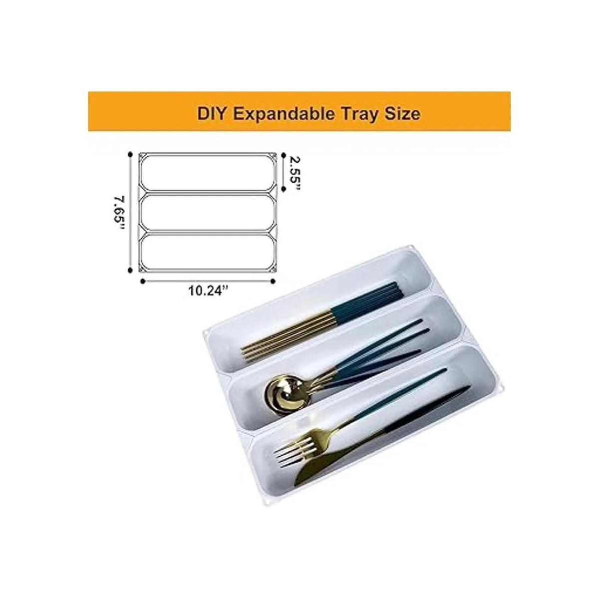 TUNGTAR Bandeja de cajones de cubiertos personalizada para cajones pequeños para soporte de utensilios, bandeja de cubiertos de 7.5 pulgadas, organizador de bricolaje para cubiertos, cubiertos, cuchillos en cocina, dormitorio blanco 3 en 1 blanco, pequeño