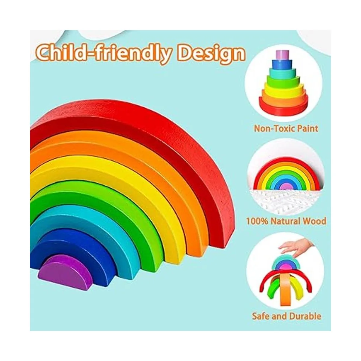 Seguridad y alta calidad: la seguridad para niños pequeños siempre es lo primero. Esta pila arcoíris está hecha de madera ecológica de alta calidad con bordes lisos que no dañan la delicada piel de tu hijo, por lo que la pila arcoíris será el juguete perfecto para niños y niñas de 3, 4, 5 años.