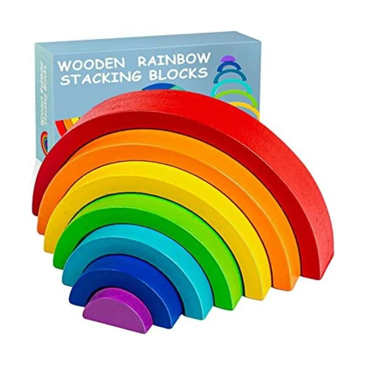 TUOWITA Juguete apilable de madera arco iris, juego apilador de madera Grimms, juguetes Montessori para niños pequeños, rompecabezas coloridos de bloques apilables para niños de 3, 4, 5 años, regalo de desarrollo temprano para niños y niñas