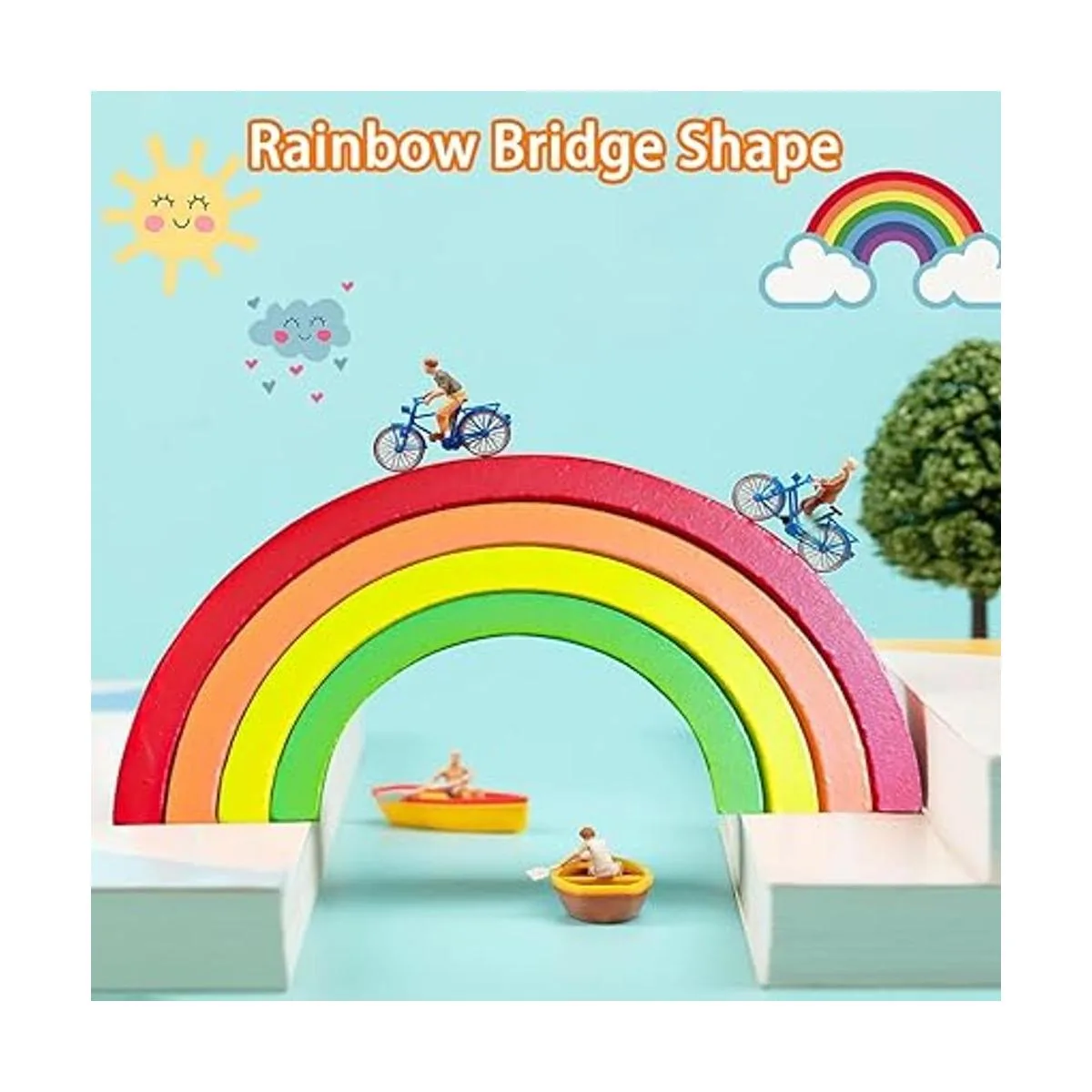 Aprendizaje a través del juego: juguetes apilables arcoíris con diseño de puente de arco, juegan de una variedad de maneras, se pueden utilizar para construir bloques, puentes, túneles y árbol de Navidad, etc. Puede mejorar la capacidad creativa de tus hijos y la capacidad de resolución de problemas, fomenta enormemente el desarrollo de la coordinación ojomano de tu bebé y la capacidad de atención.
