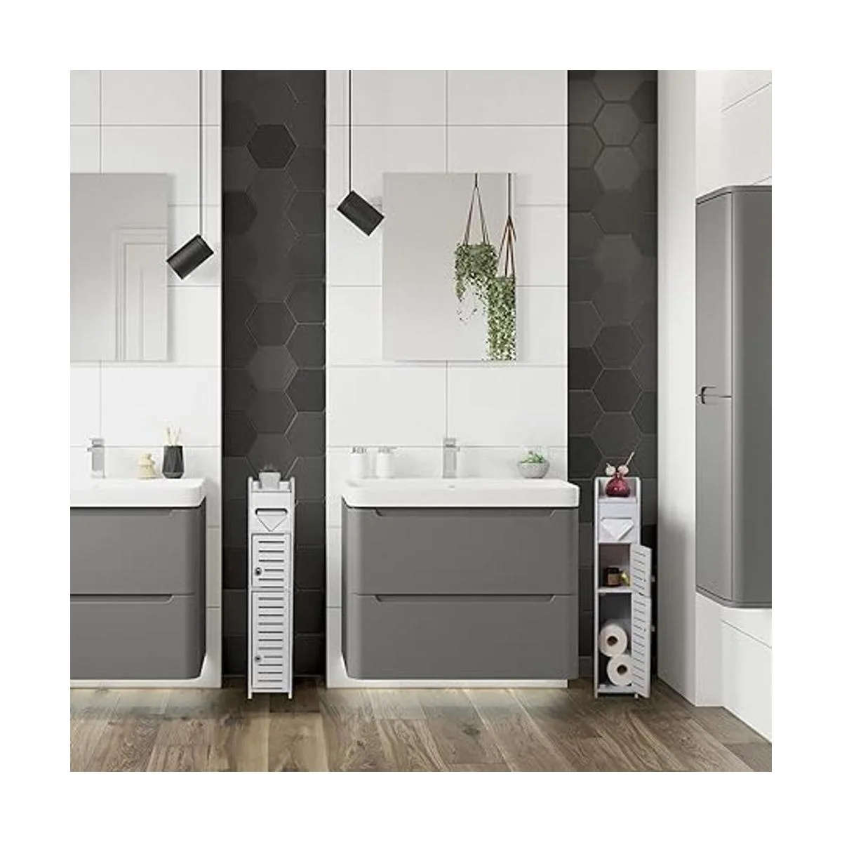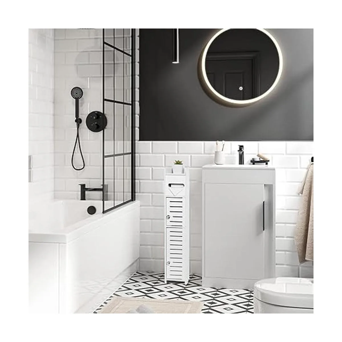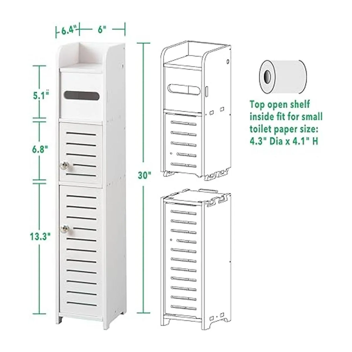 TUOXINEM Armario pequeño de almacenamiento de baño para espacios pequeños, gabinete de almacenamiento sobre el inodoro para piso de esquina de almacenamiento de baño delgado, gabinete de almacenamiento de papel higiénico delgado con 2 puertas y estantes blanco