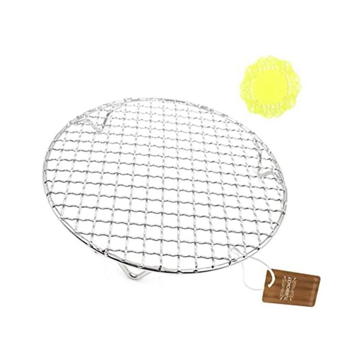 Turbokey Estante redondo para conservas de acero inoxidable con patas de diámetro de 8.25 pulgadas de alambre cruzado pesado al vapor, rejilla para hornear de carbono, parrilla o sartén 8.268 in8.25 pulgadas