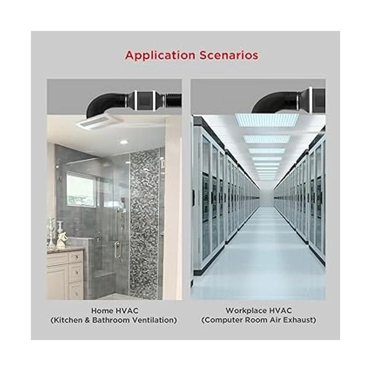 Múltiples aplicaciones: este conducto se utiliza principalmente con sistemas de ventilador de conductos para la circulación del aire en tiendas de campaña hidropónicas, eliminación de olores y humedad en baños, y escape de aire caliente en salas de computadora. Este conducto también se puede utilizar para eliminar el humo y los olores durante los procesos de corte láser industriales.