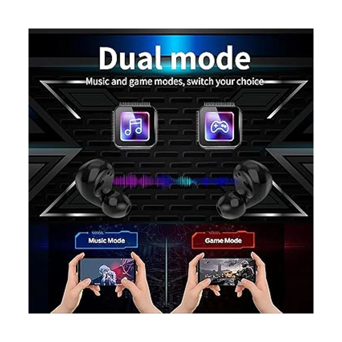 Ture Auriculares inalámbricos Bluetooth para juegos, con control táctil, con estuche de carga, reducción de ruido, 36 horas de reproducción estéreo, para niños, sin demora, auriculares deportivos para iPhoneAndroid