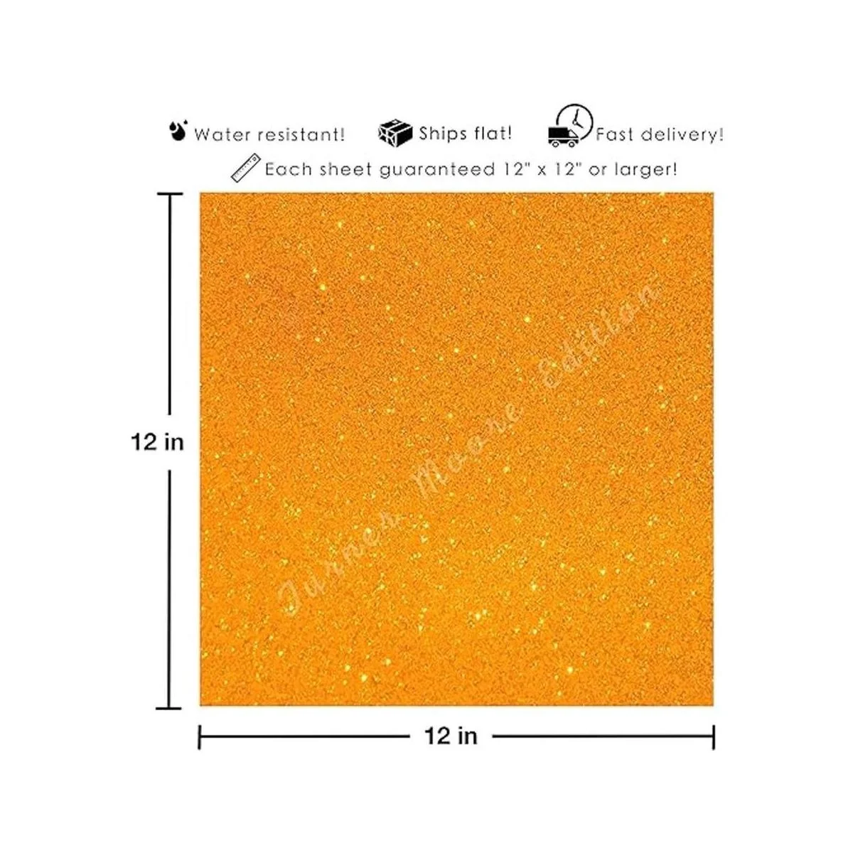 Paquete de 5 hojas de vinilo con purpurina naranja de 12 x 12, 5 pies en total, convenientemente precortadas en piezas de 12 x 12 pulgadas. Se envía plano