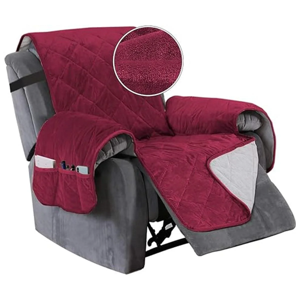 Turquoize Fundas reclinables de terciopelo para sillas reclinables, fundas antideslizantes para sillón reclinable pequeño con correas elásticas, ancho del asiento de hasta 22 pulgadas, protector de muebles para silla reclinable tamaño mediano, borgoña